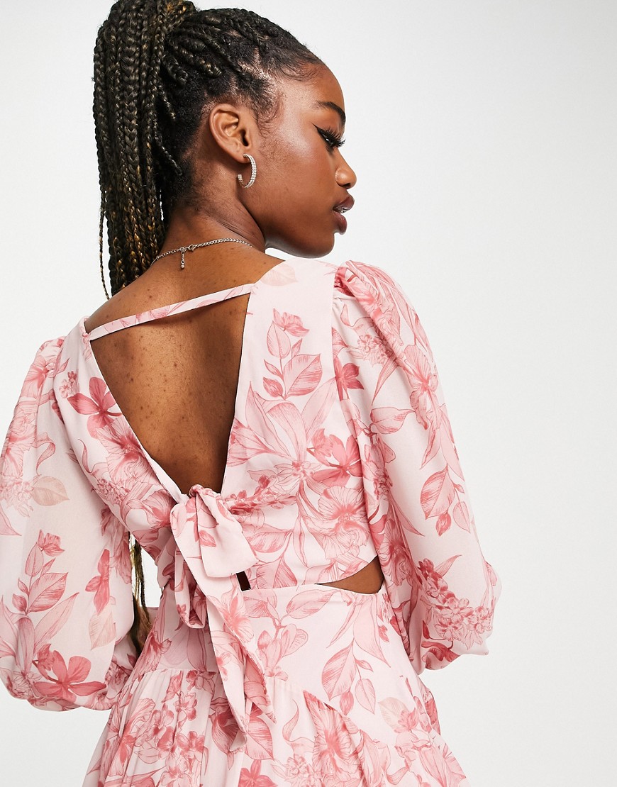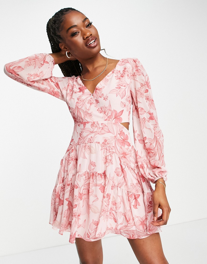 Forever New różowa wiązana sukienka mini z wycięciem w kwiaty 34