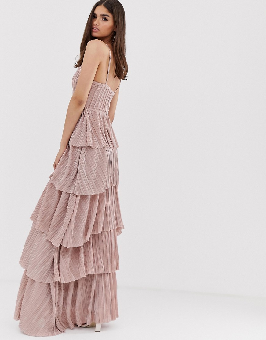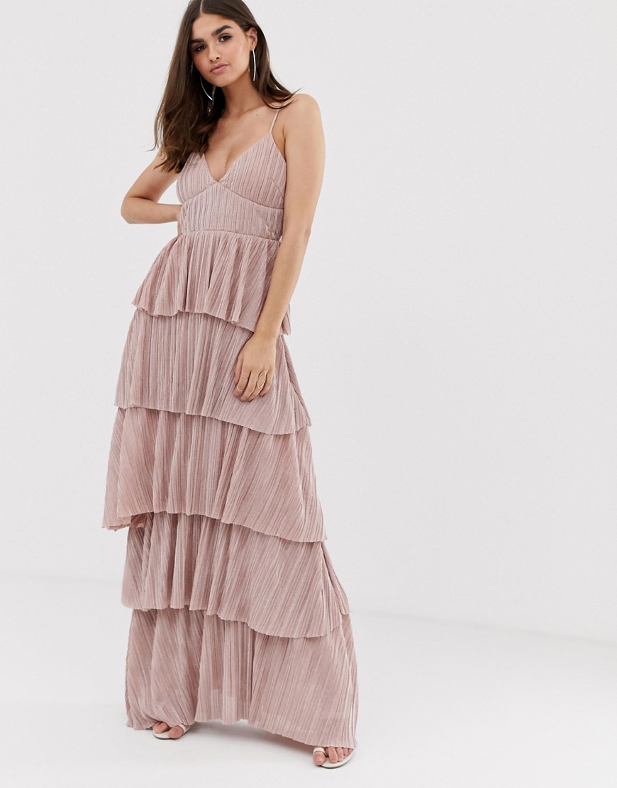 Forever Unique brokatowa warstwowa sukienka maxi różowa 44