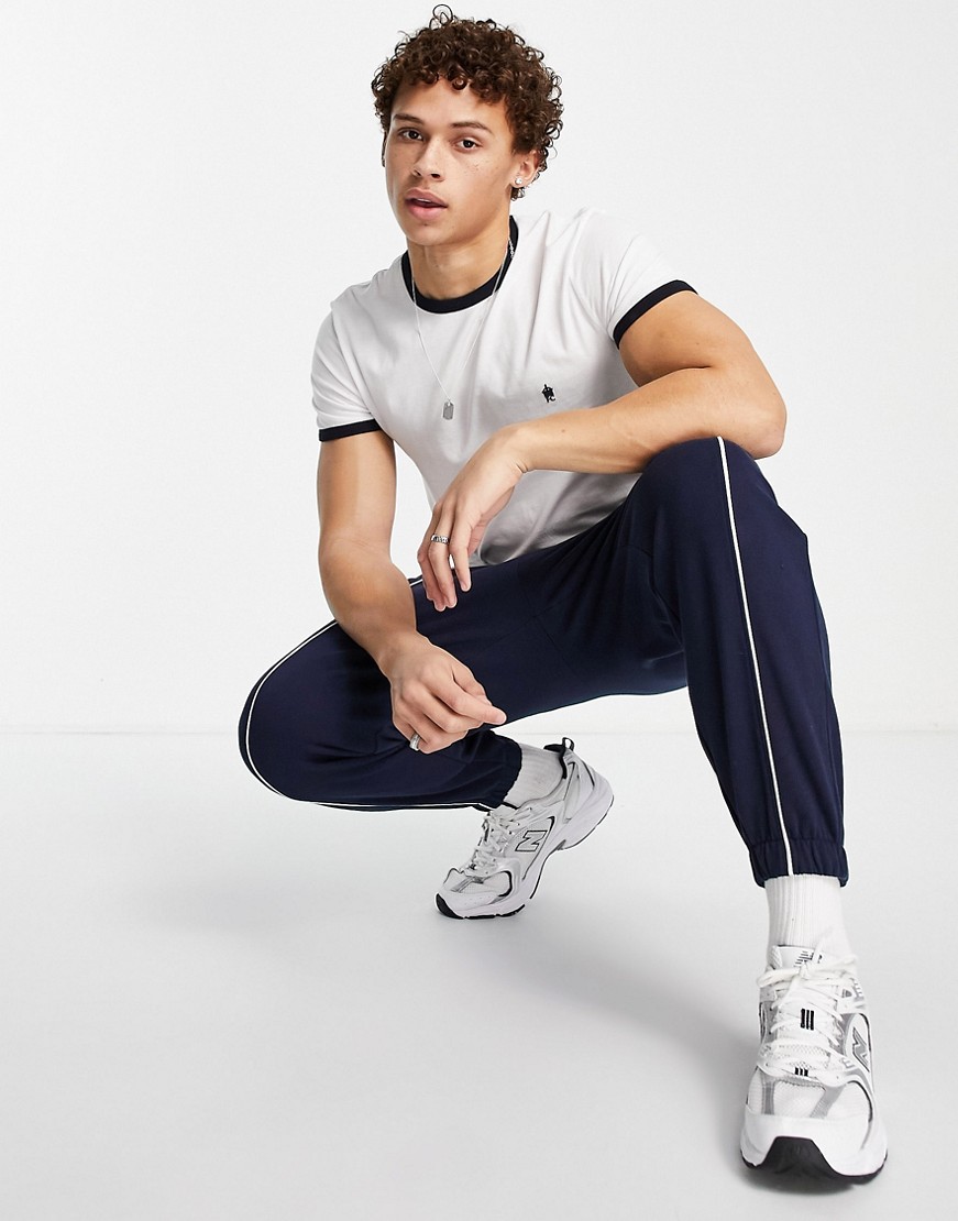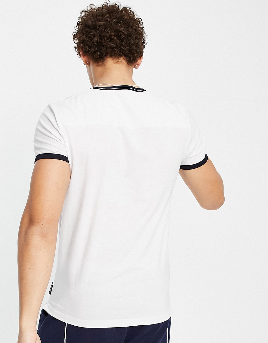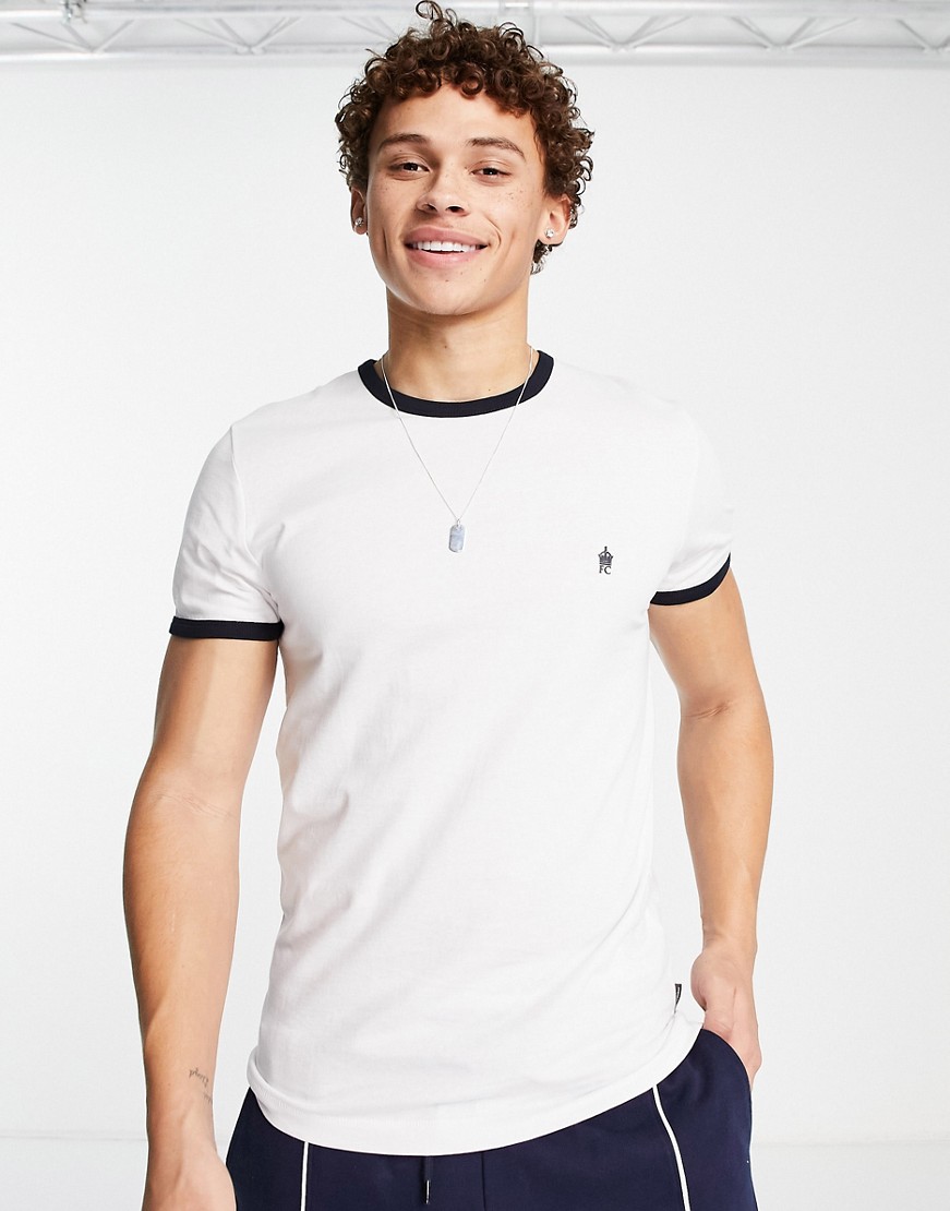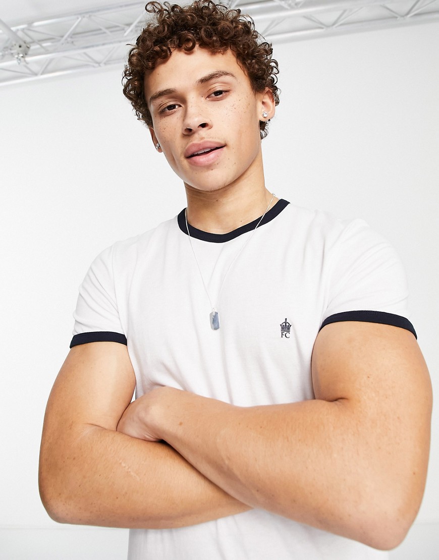 French Connection Biały T-shirt z lamówką defekt L