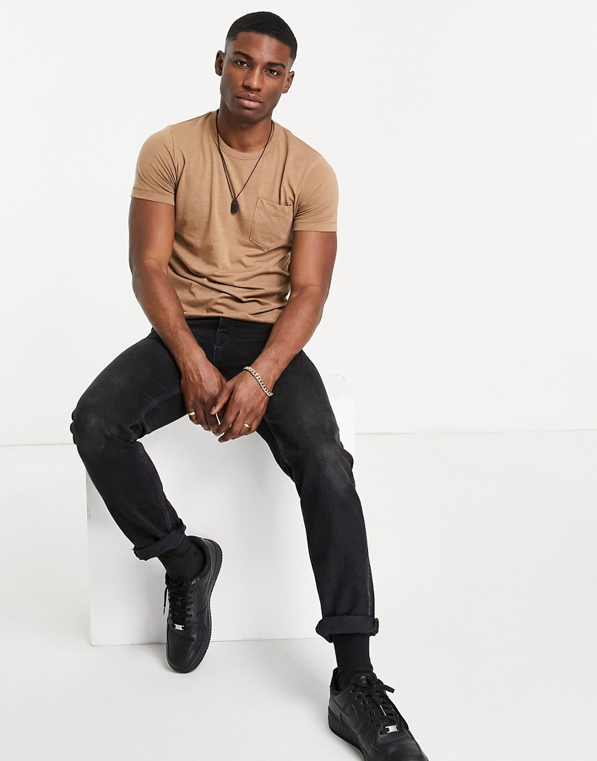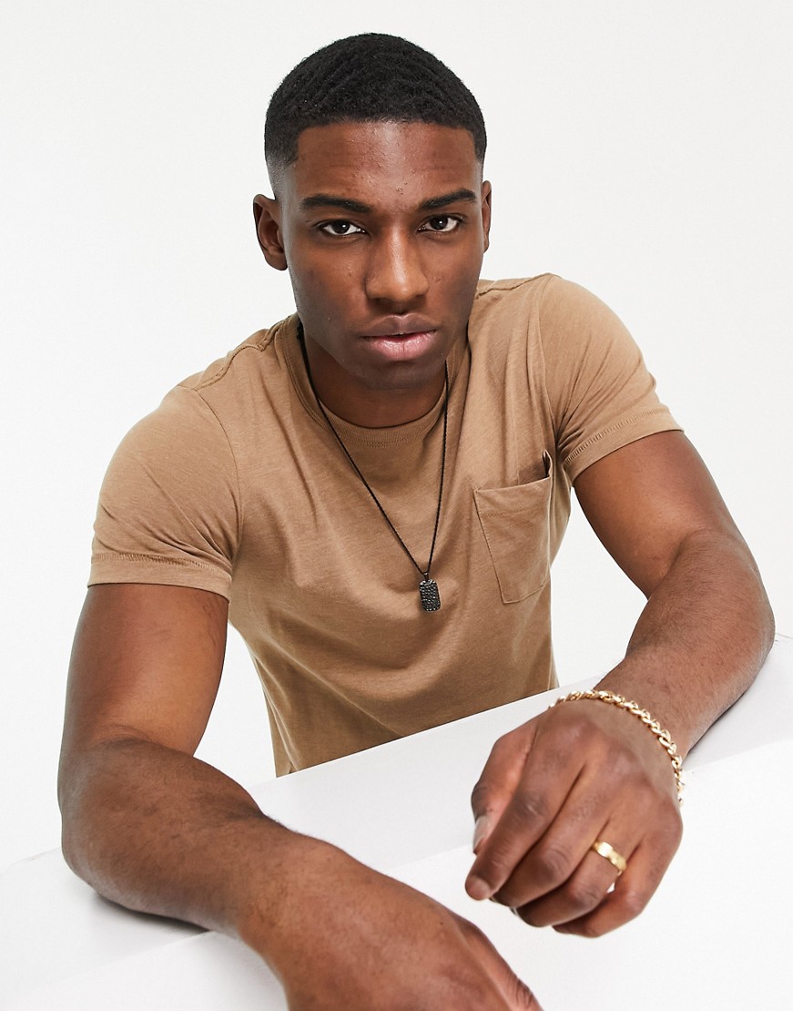 French Connection brązowy męski t-shirt z logo defekt L