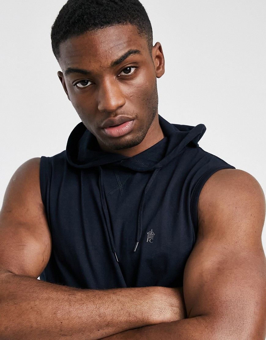 French Connection – Granatowa bluza z kapturem bez rękawów M