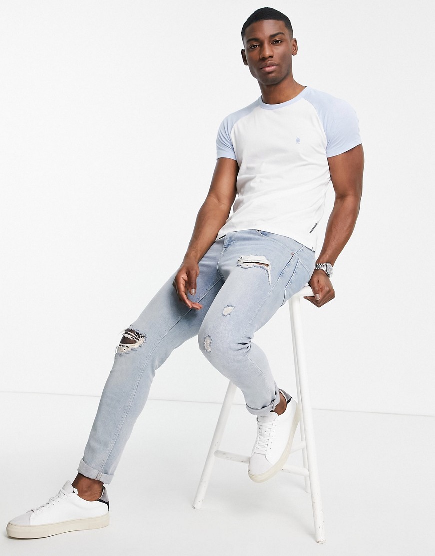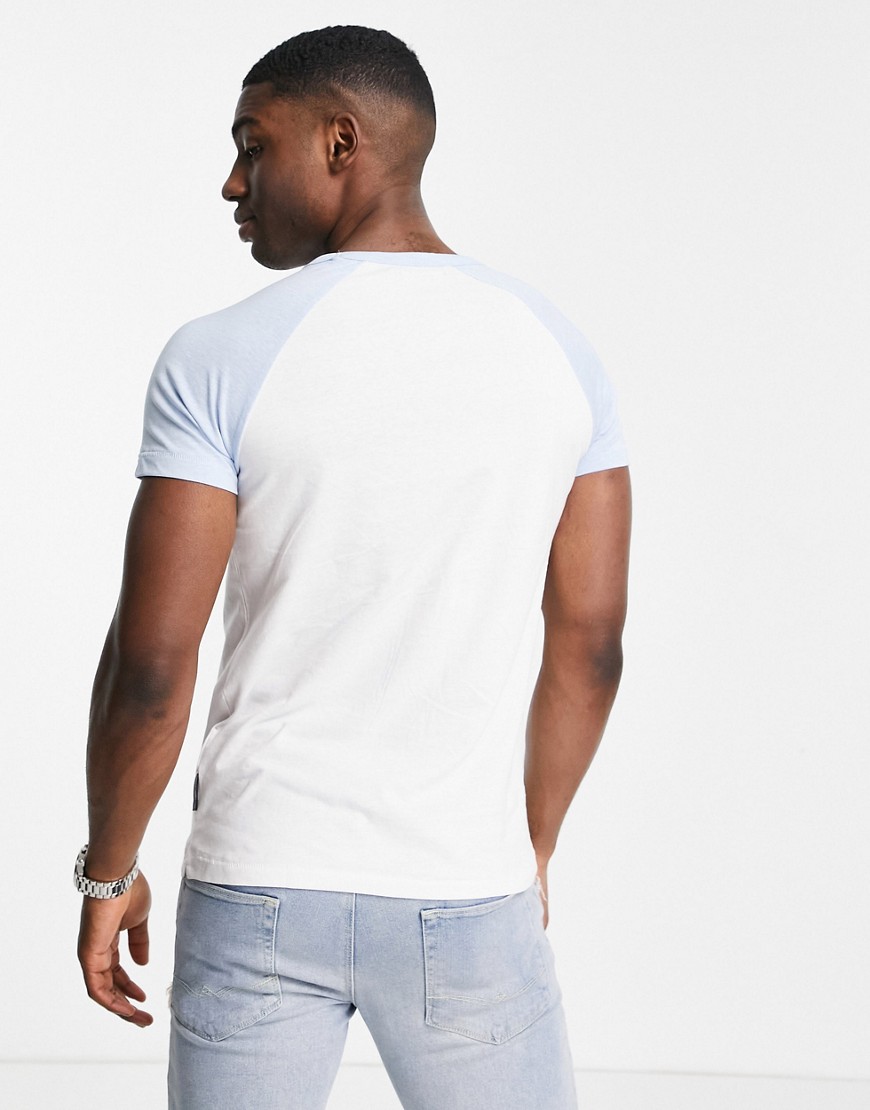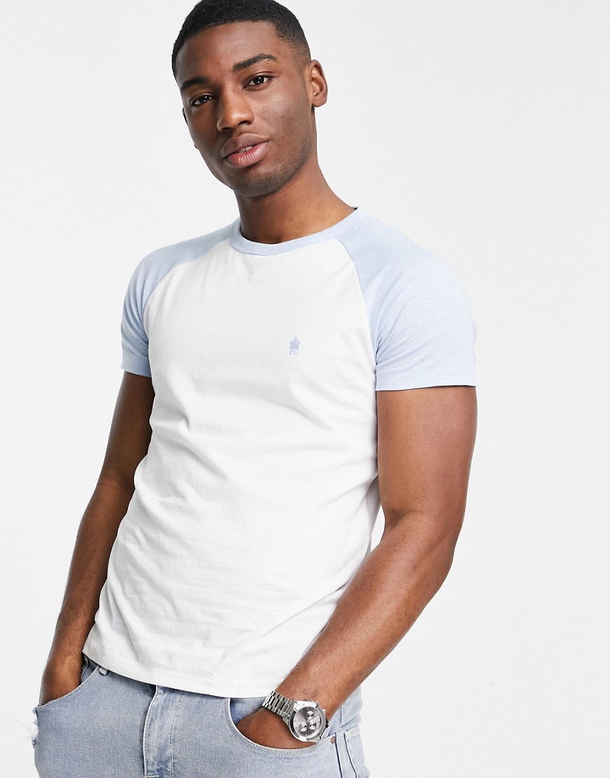 French Connection męski biało błękitny T-shirt raglanowy L
