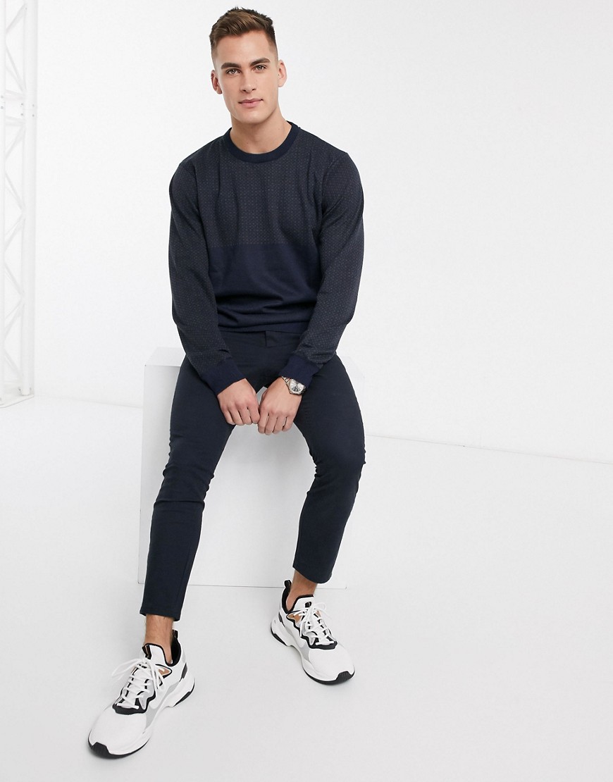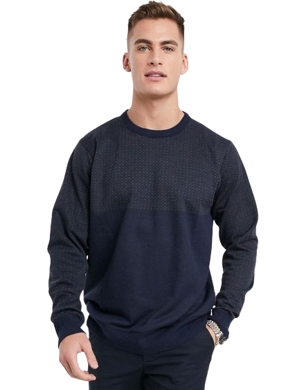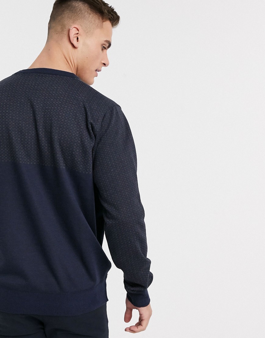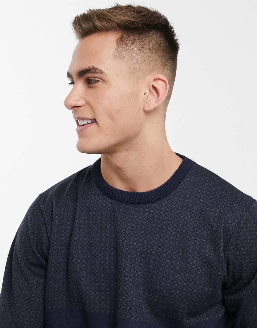 French Connection teksturowany swetermęski z okrągłym dekoltem granatowy defekt S