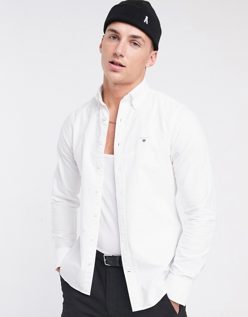 Gant biała męska dopasowana koszula oxford z guzikami logo S