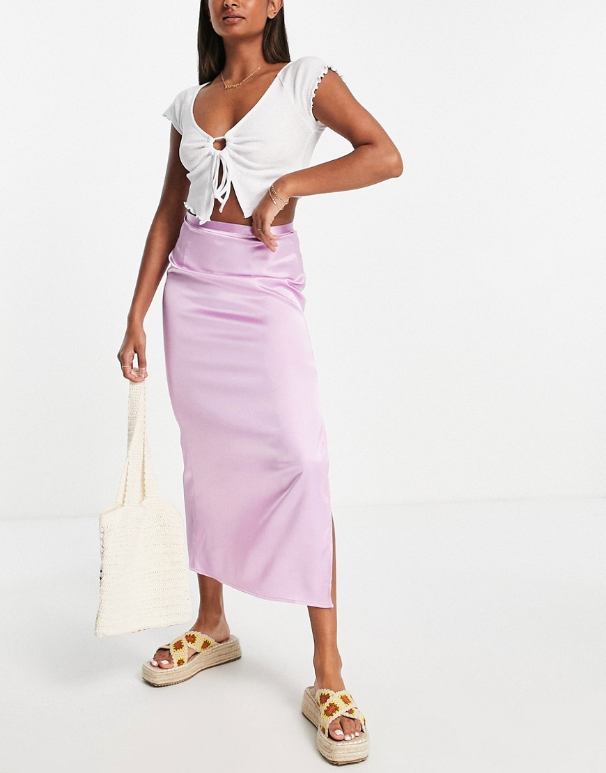 Gładka satynowa spódnica midi fioletowa defekt 34