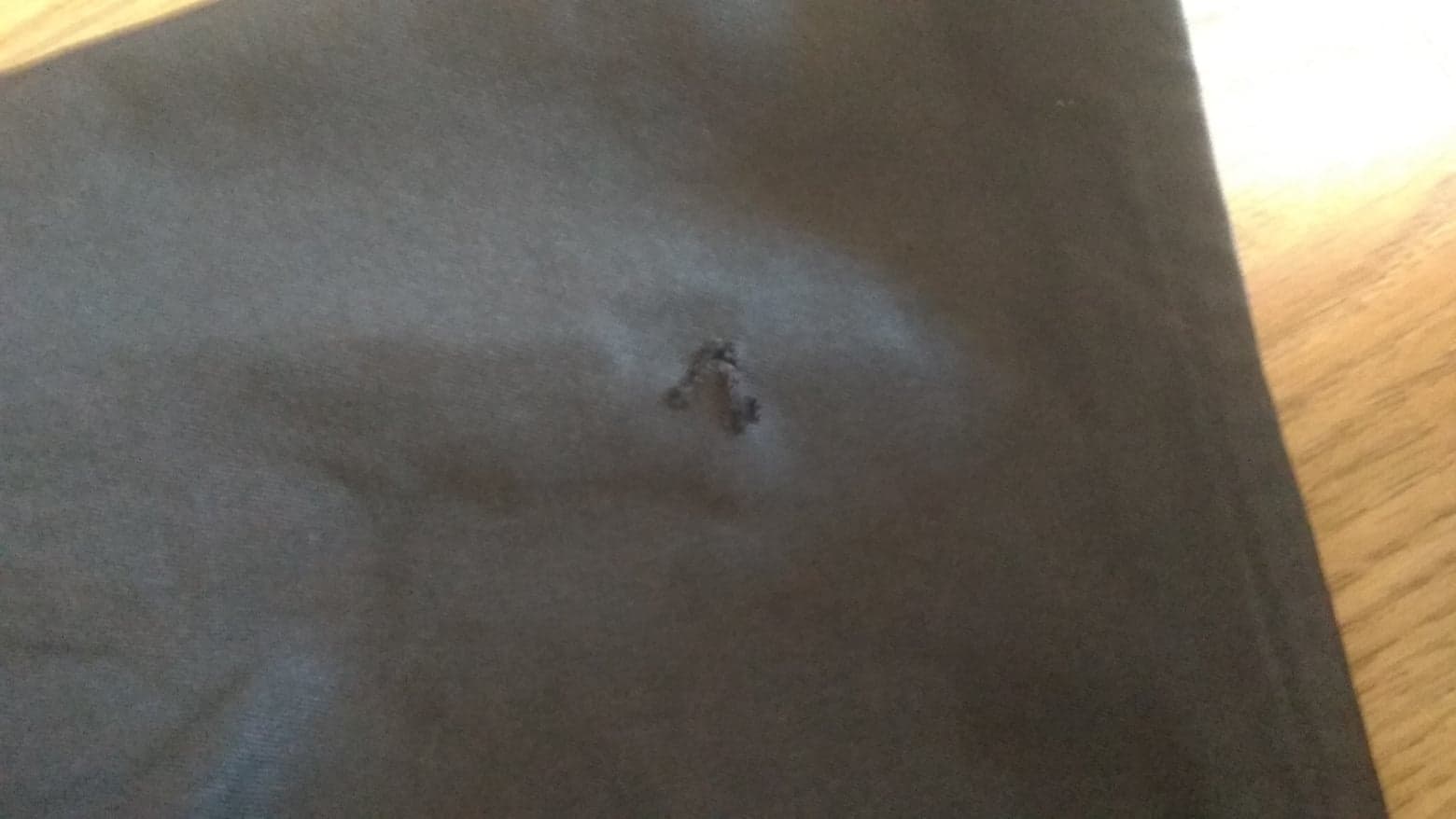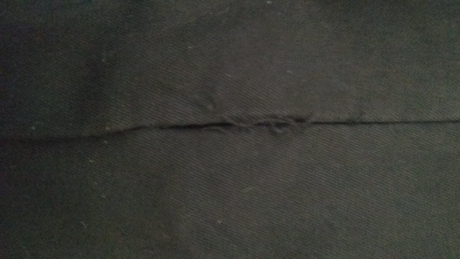 - Defekt: dziurka u dołu (zdjęcie) puszczona na szwie przy zamku (zdjęcie)