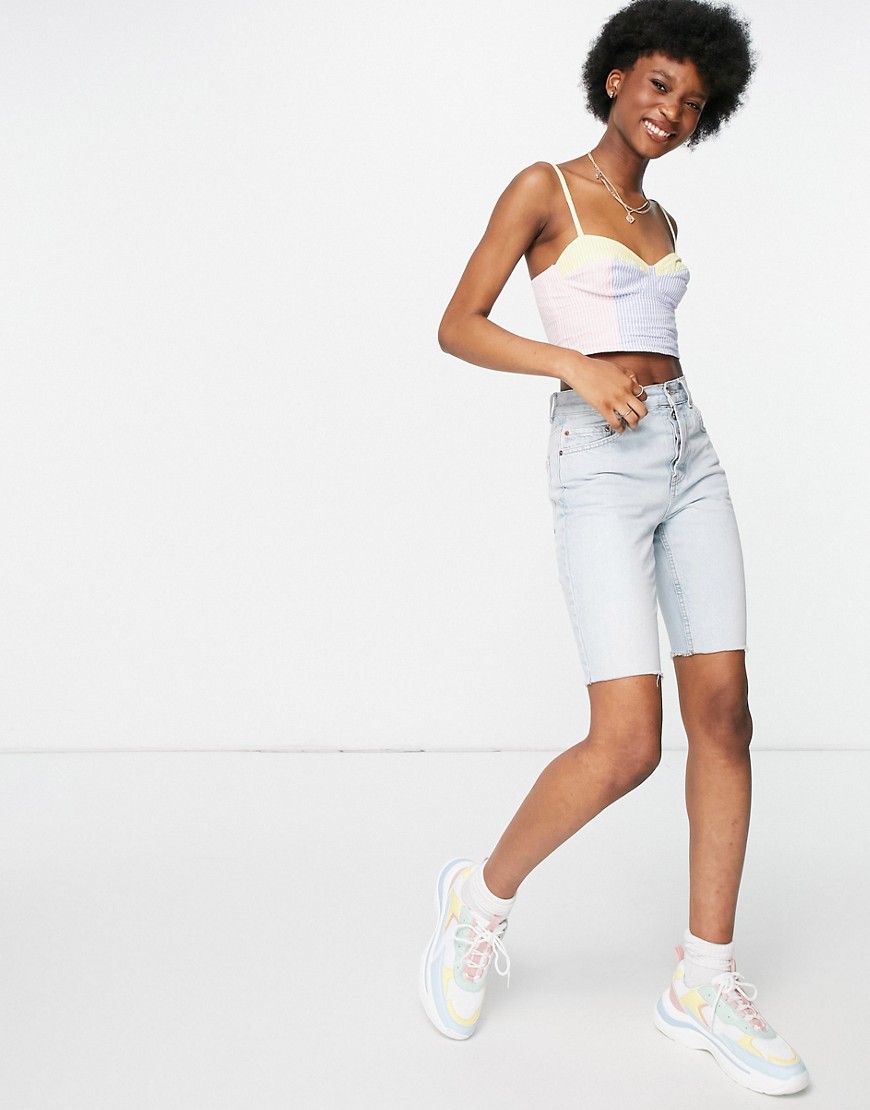 Gorsetowy top na ramiączkach w kontrastowe paski XS