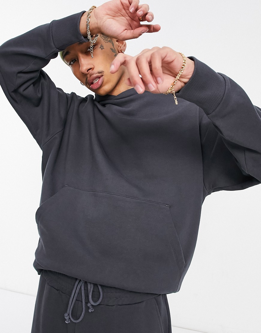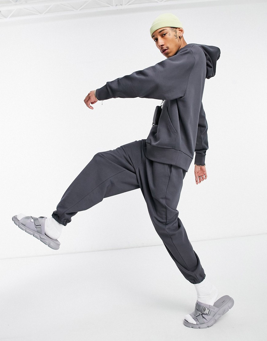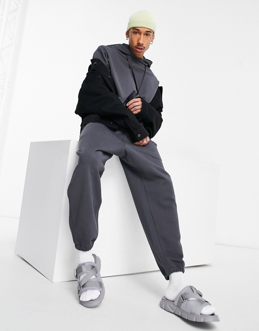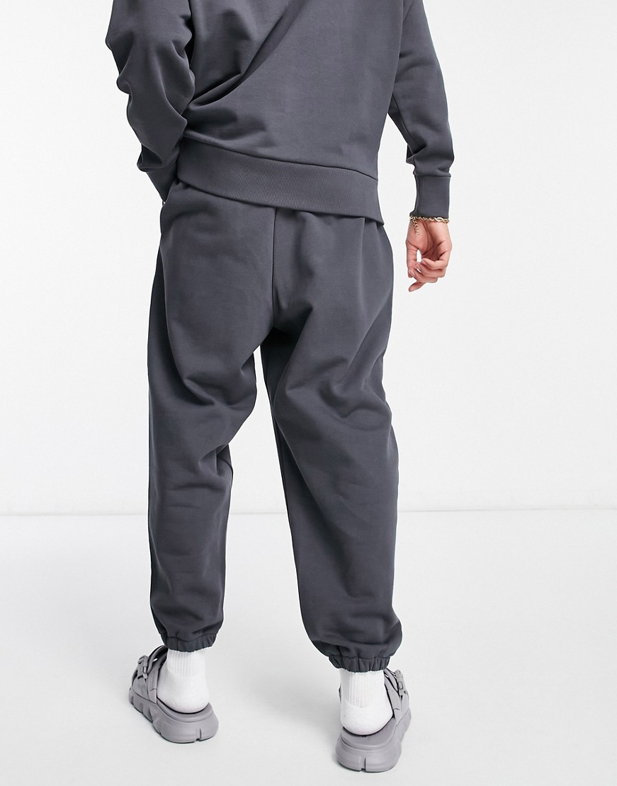 Grafitowe grube joggersy oversize z efektem sprania defekt XS