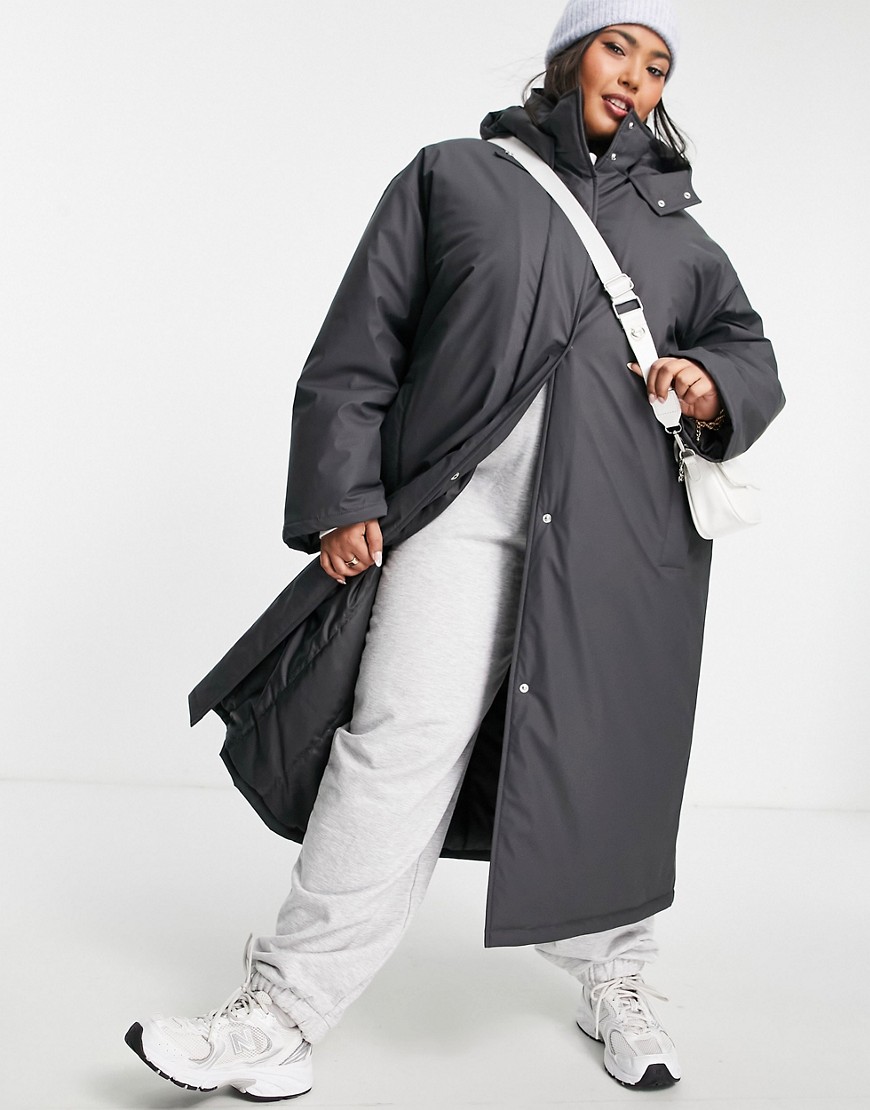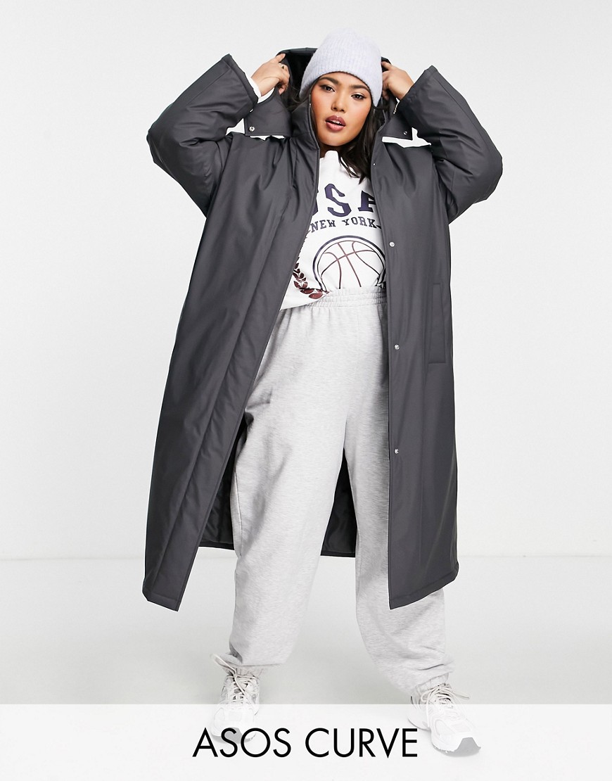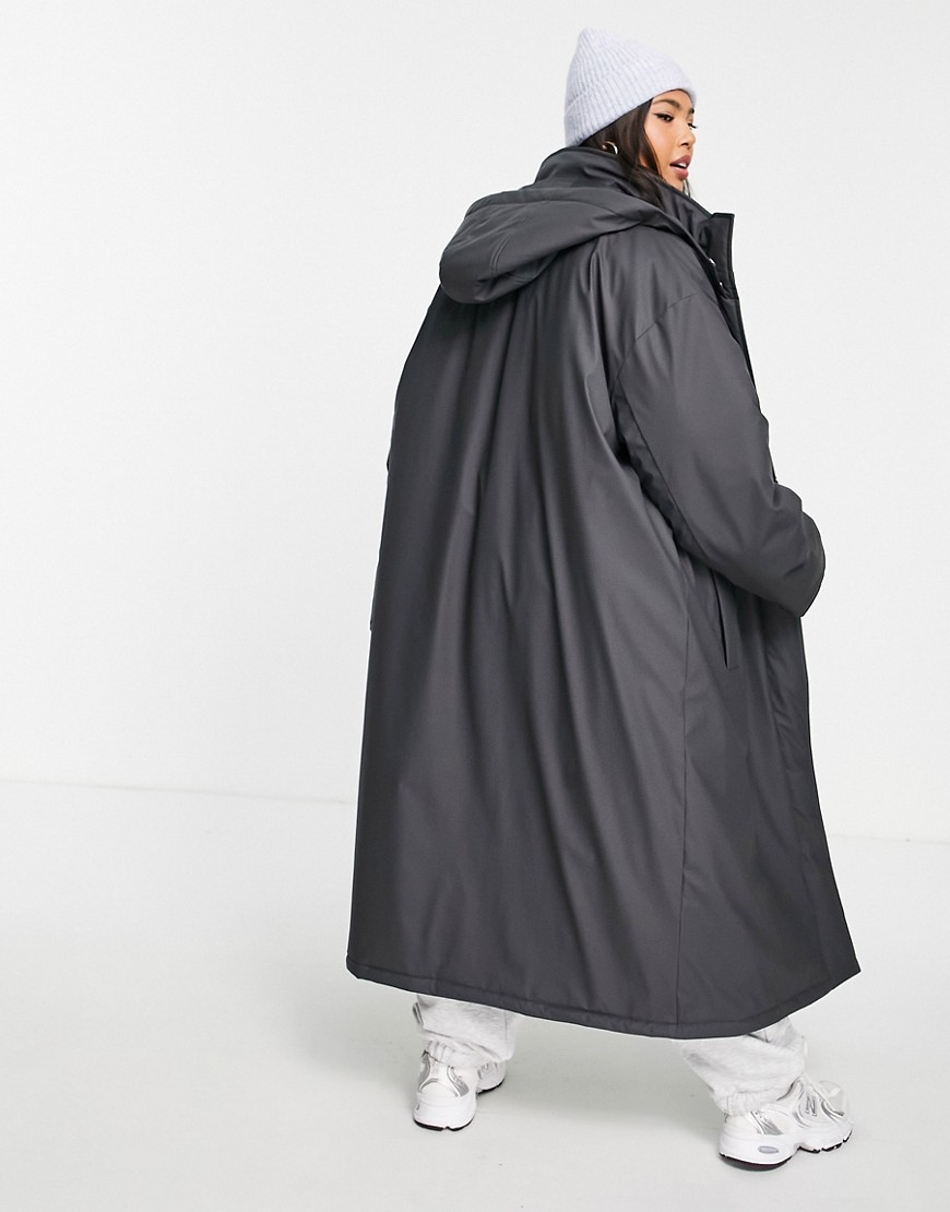 Grafitowy lekko ocieplony gumowany płaszcz przeciwdeszczowy 46