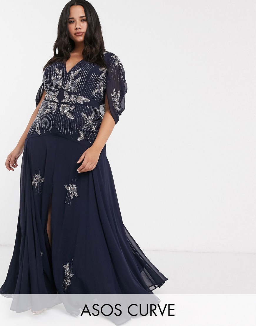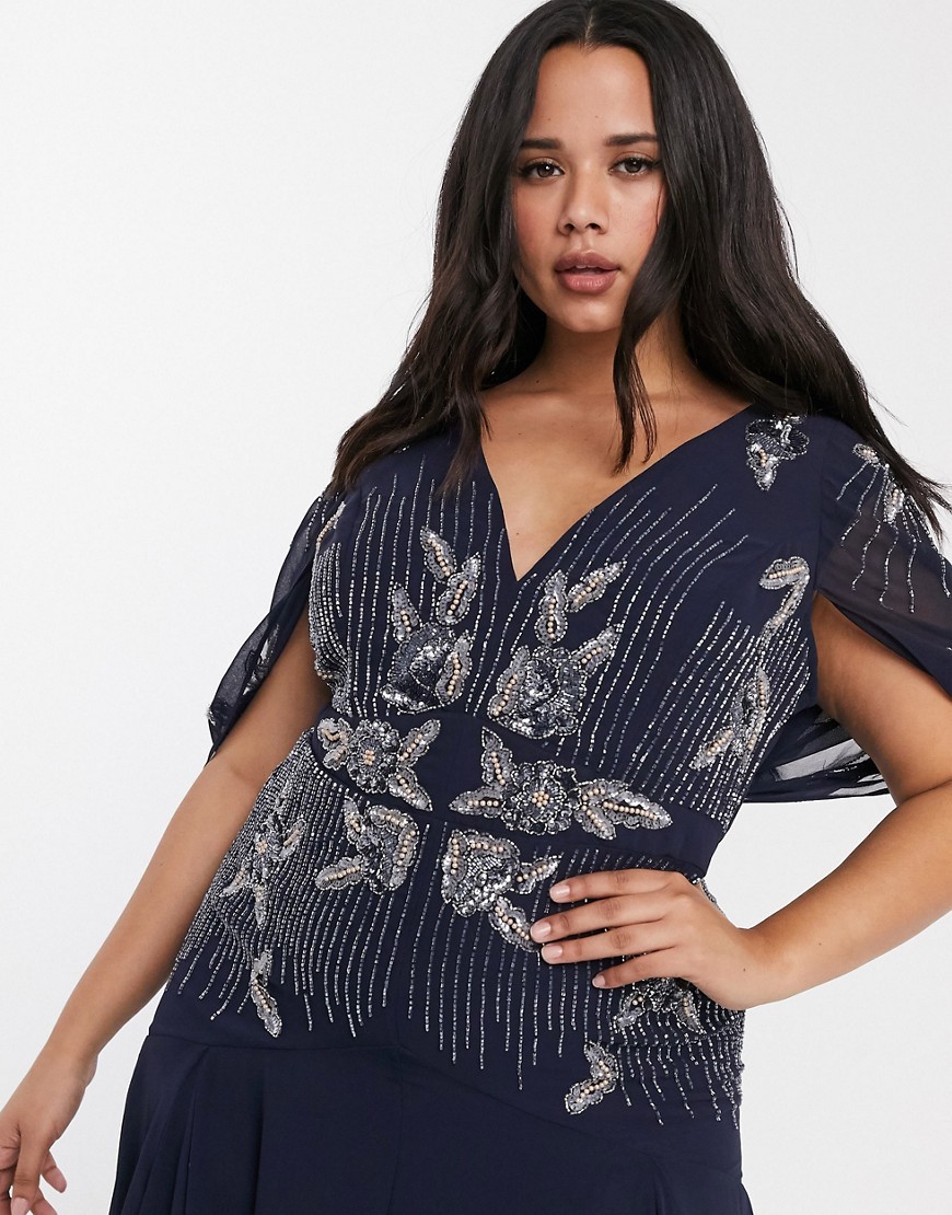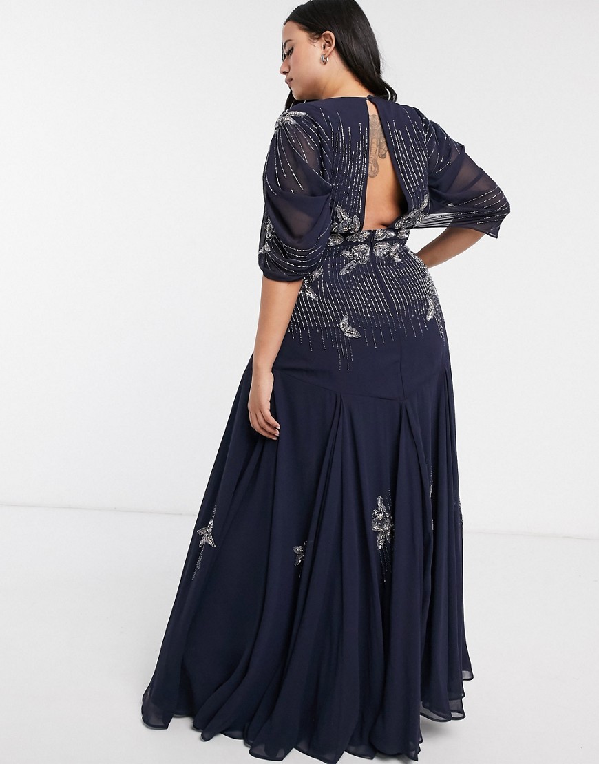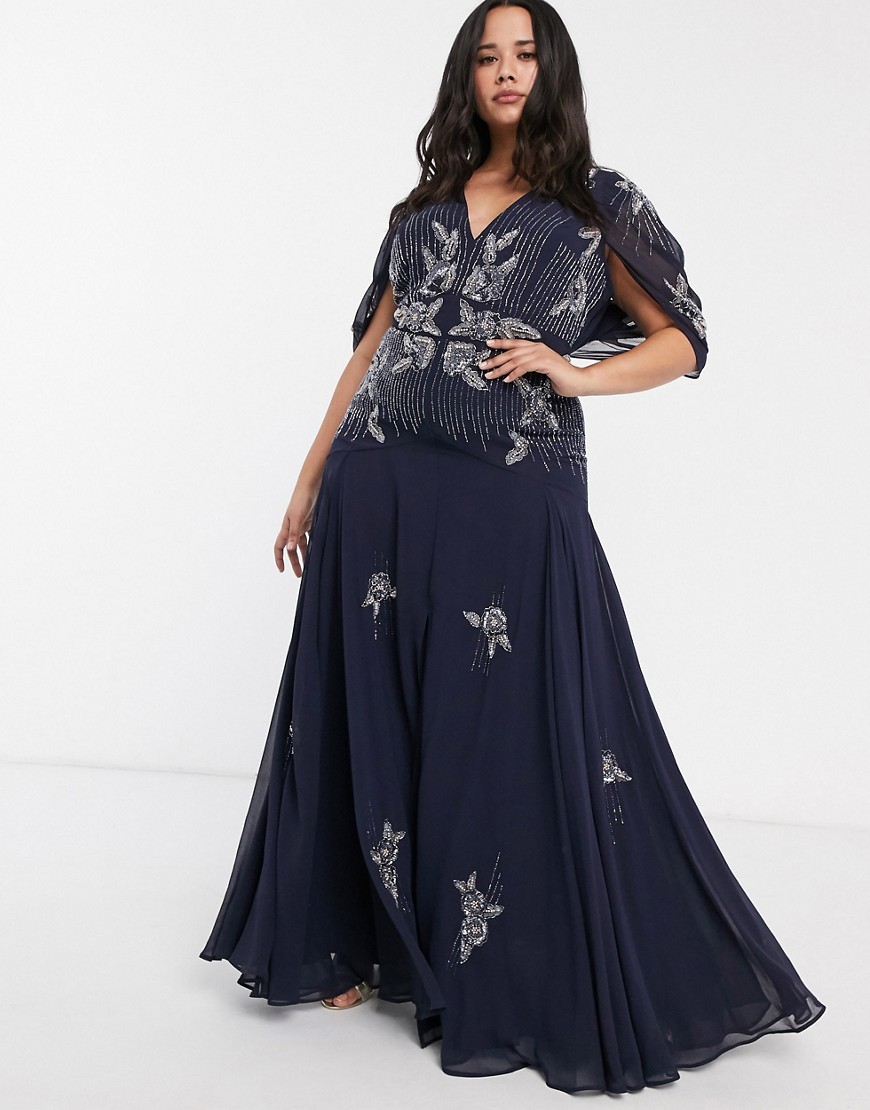 Granatowa długa Sukienka cekiny koraliki plus size 56