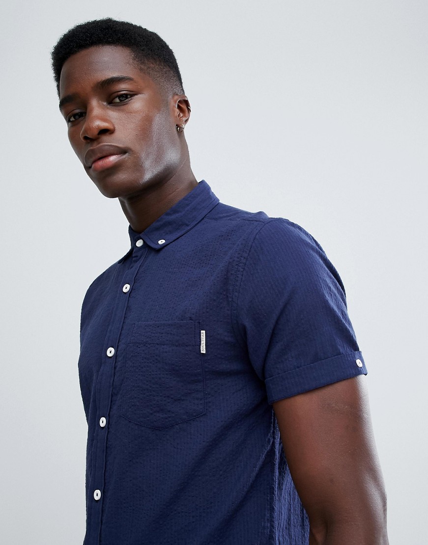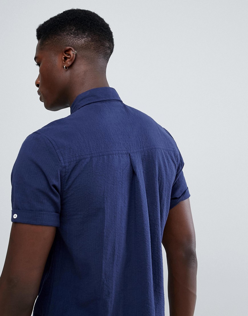 Granatowa koszula z krótkim rękawem SlimFit S