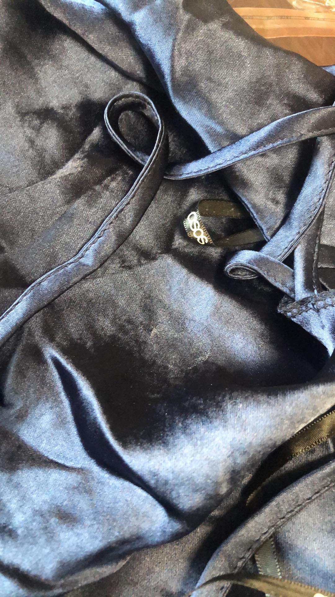 Granatowa sukienka na ramiączkach z satyny defekt 44