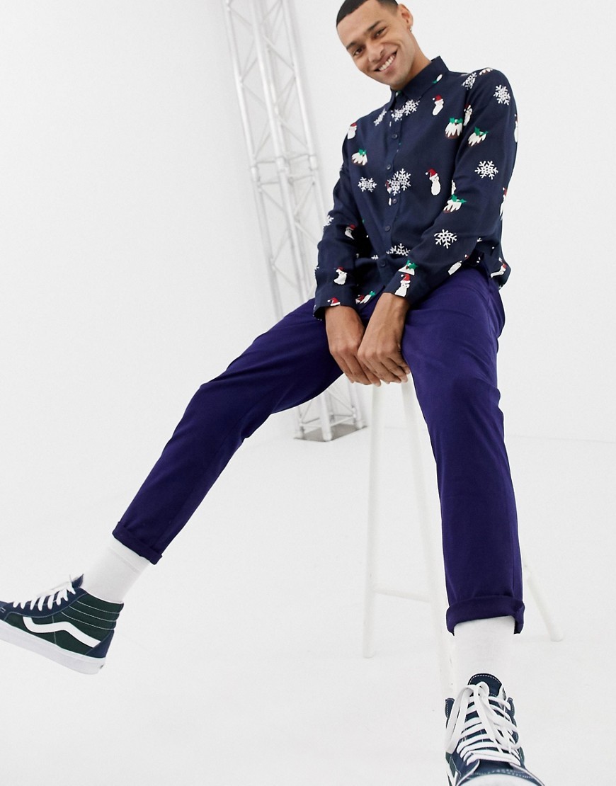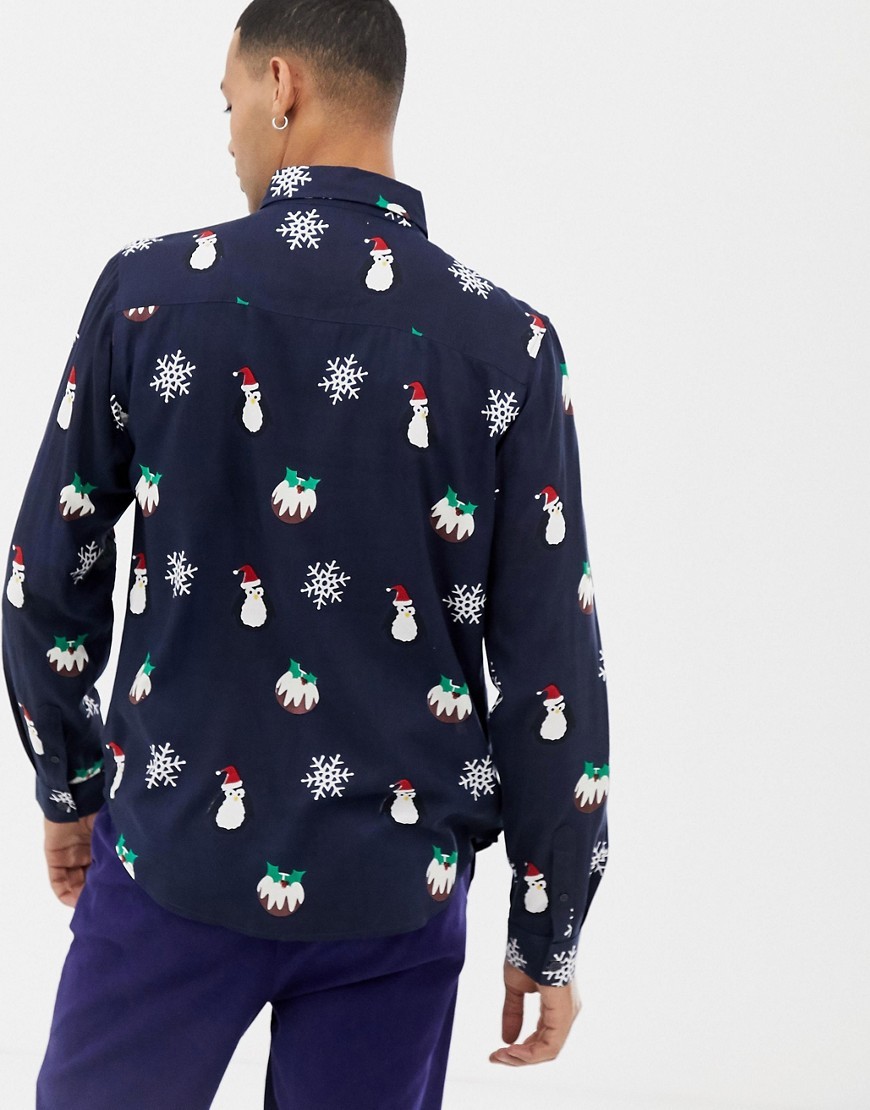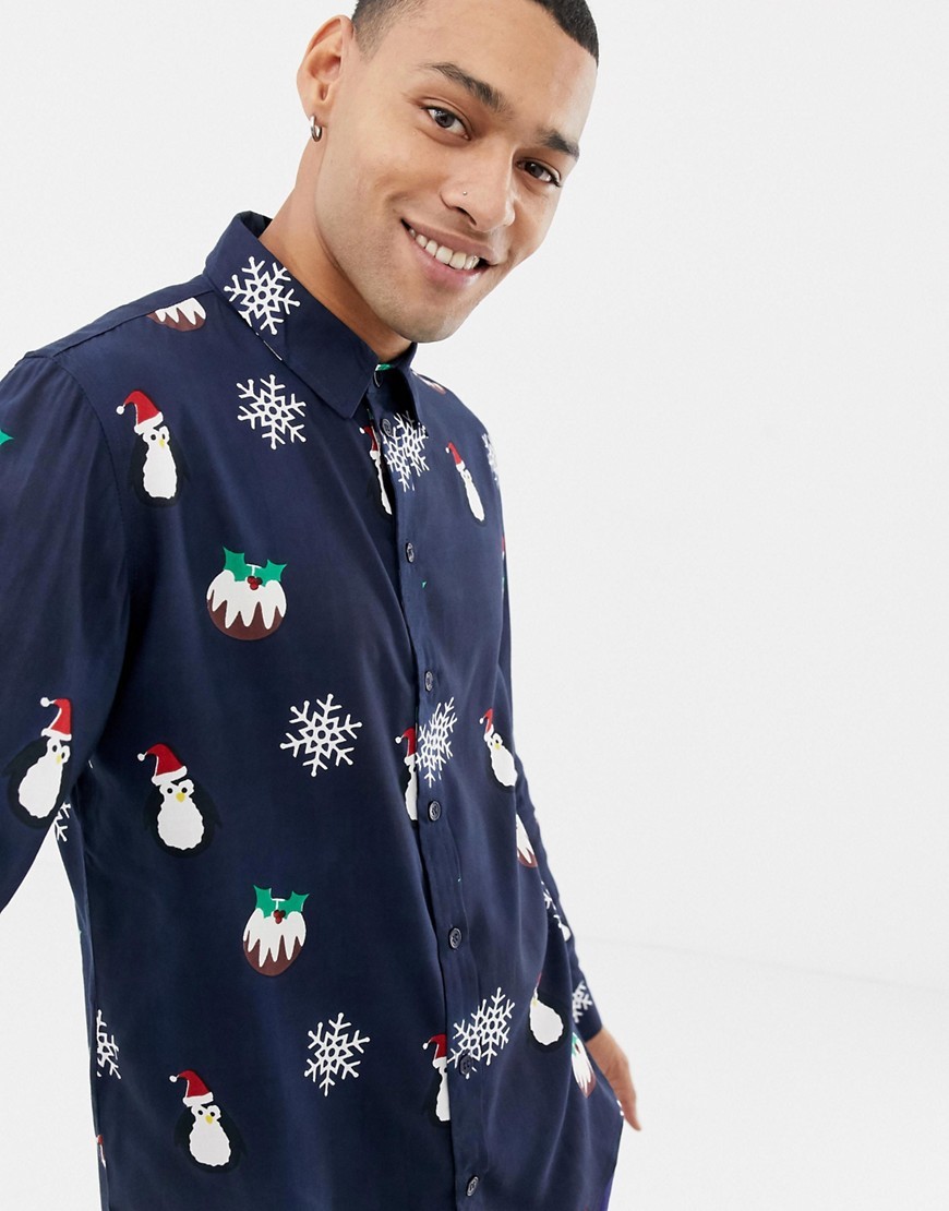 Granatowe Koszule w świąteczny print L