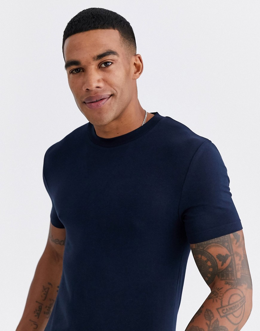 Granatowy T-shirt o kroju podkreślającym sylwetkę z okrągłym dekoltem L