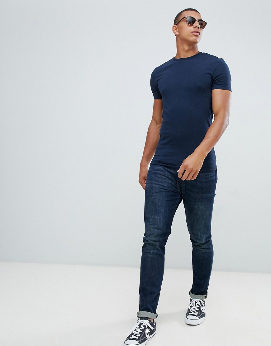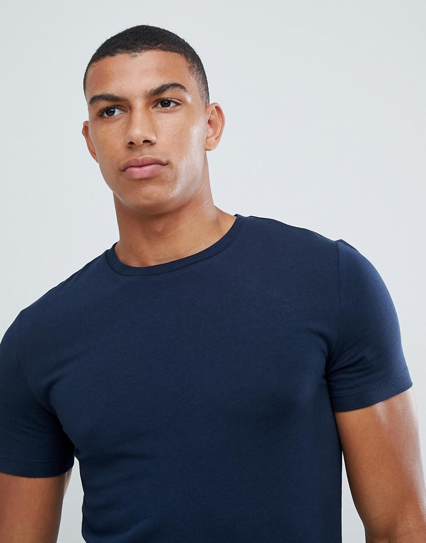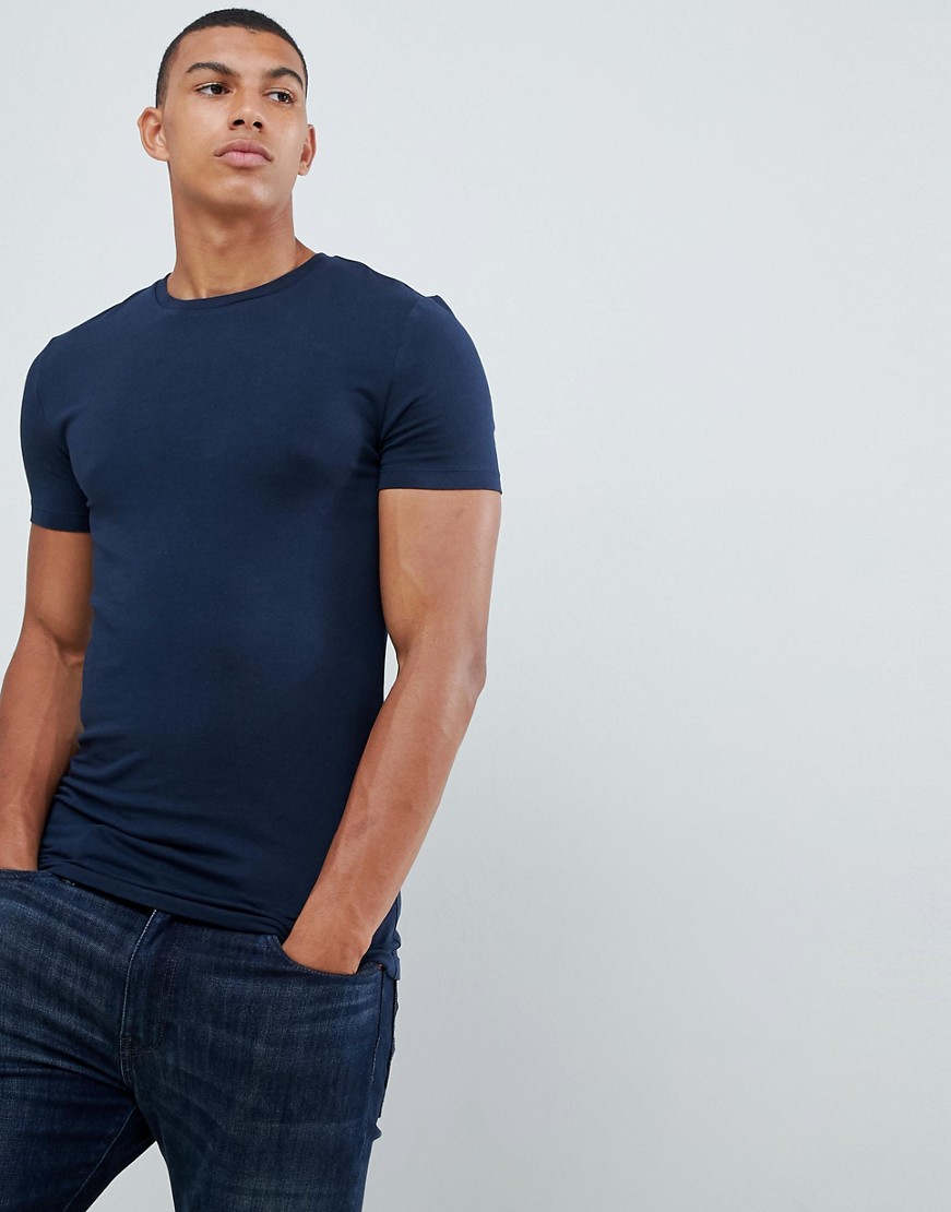 Granatowy t-shirt podkreślającym sylwetkę z okrągłym dekoltem L