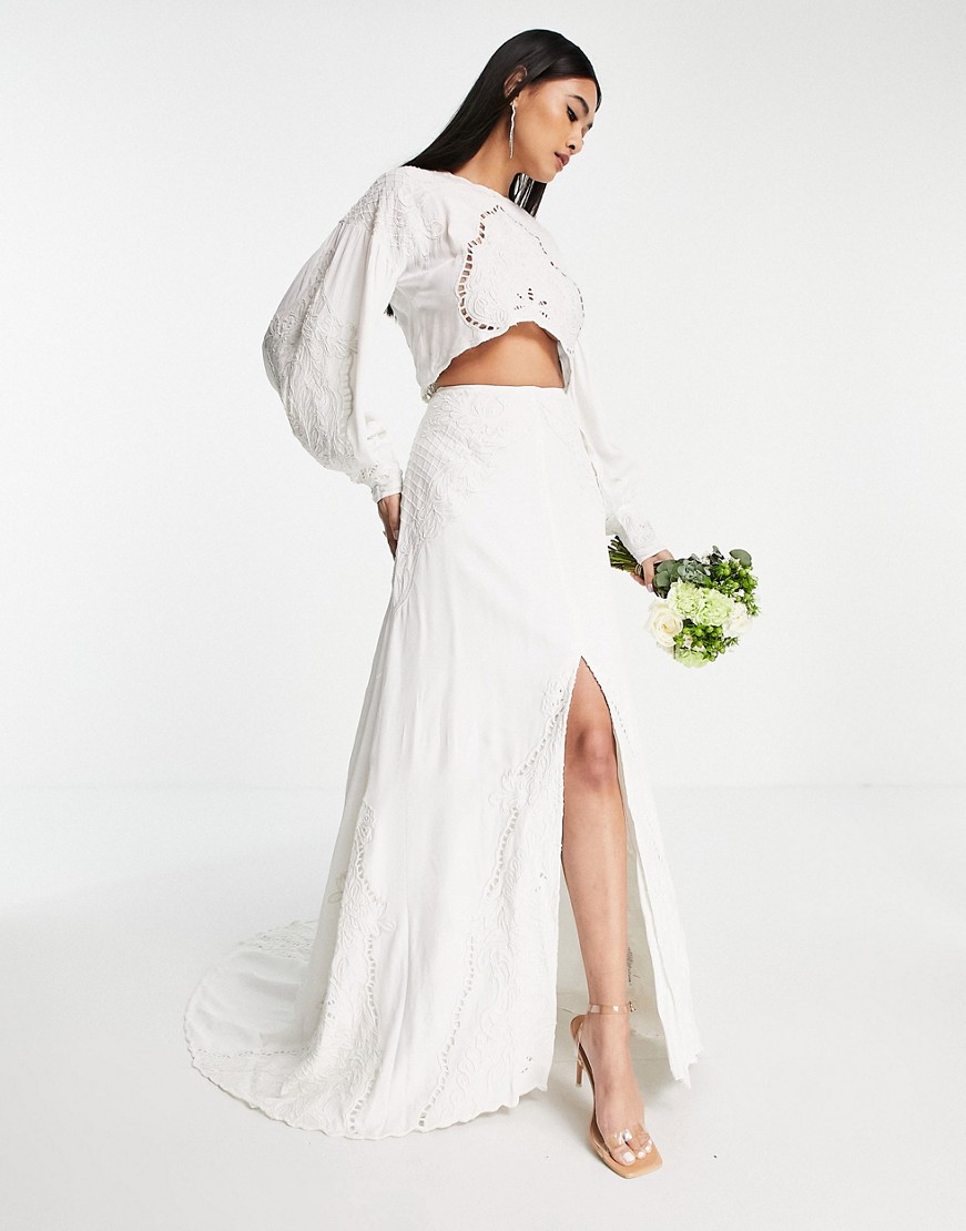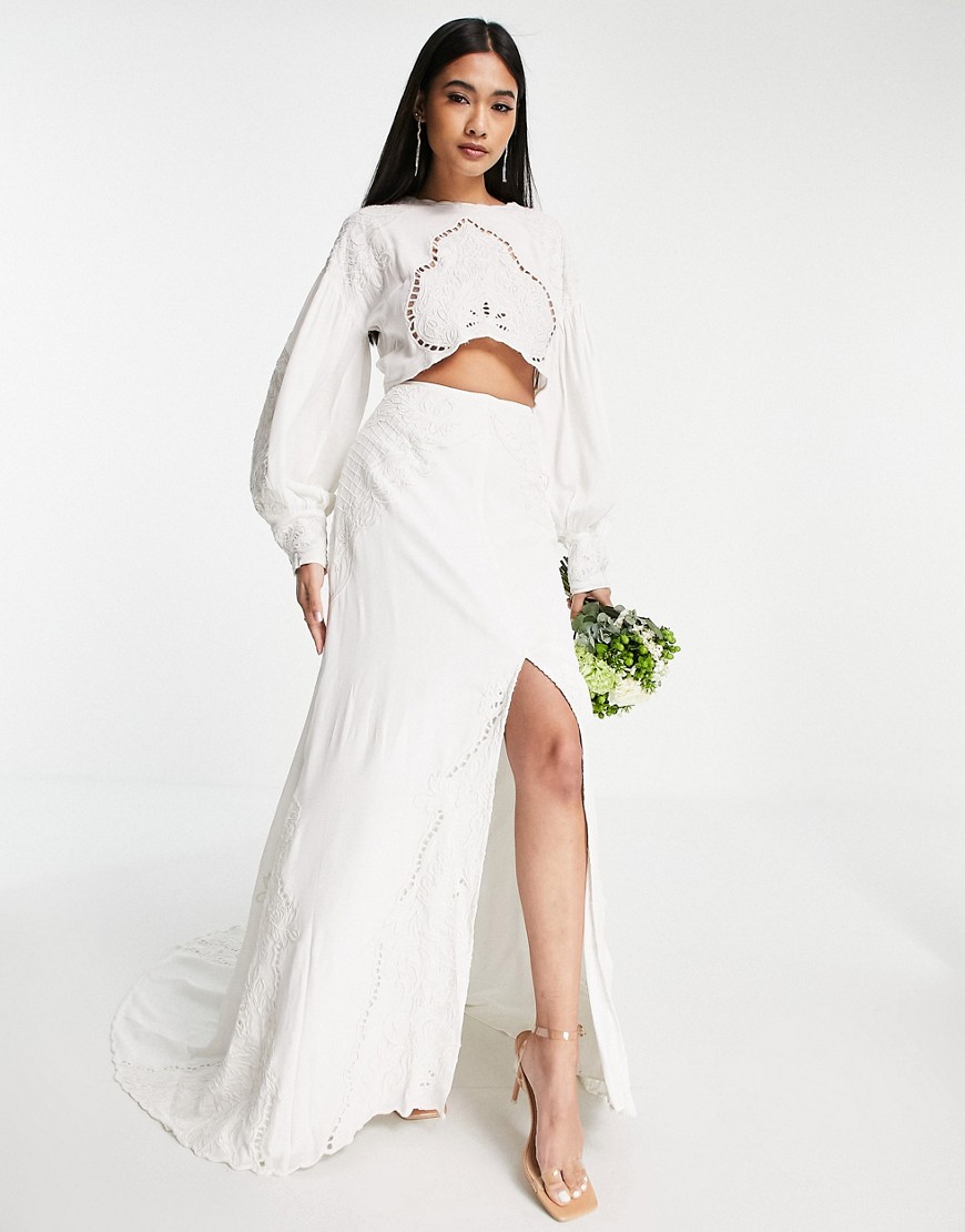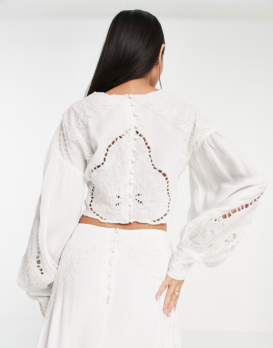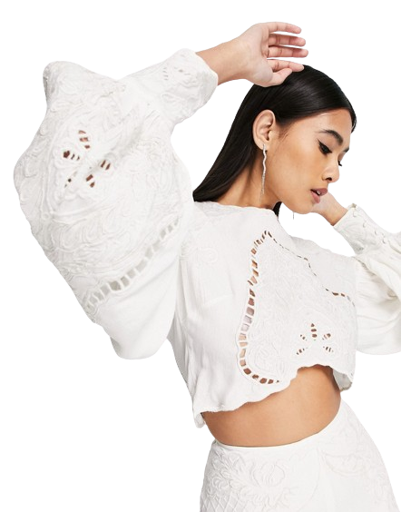 Haftowany top w kolorze kości słoniowej w wycinany wzór 46