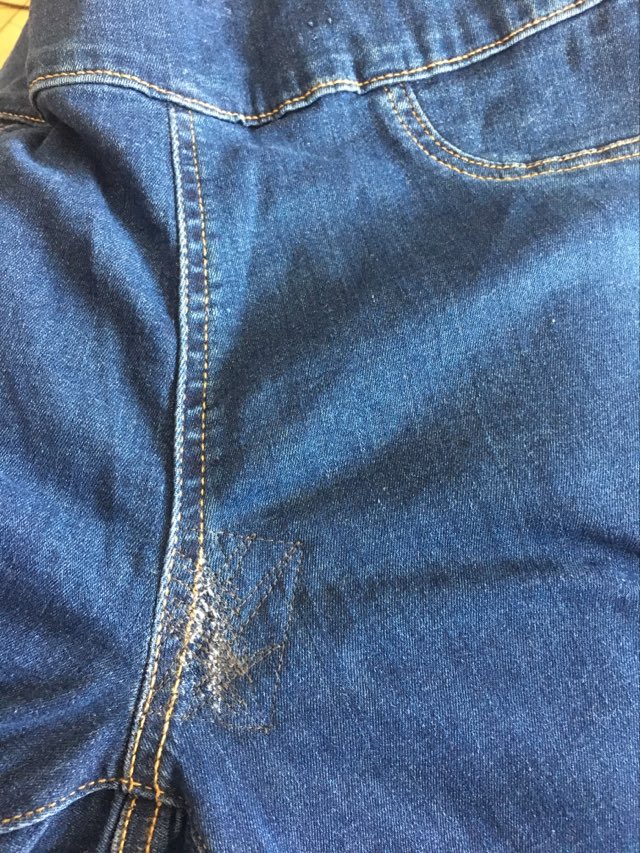 • Defekt: spodnie po przeróbce krawieckiej – zdjęcie w galerii przedmiotu.