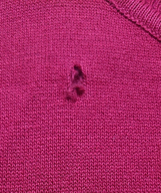 - DEFEKT: z przodu z prawej strony pod dekoltem dziurka