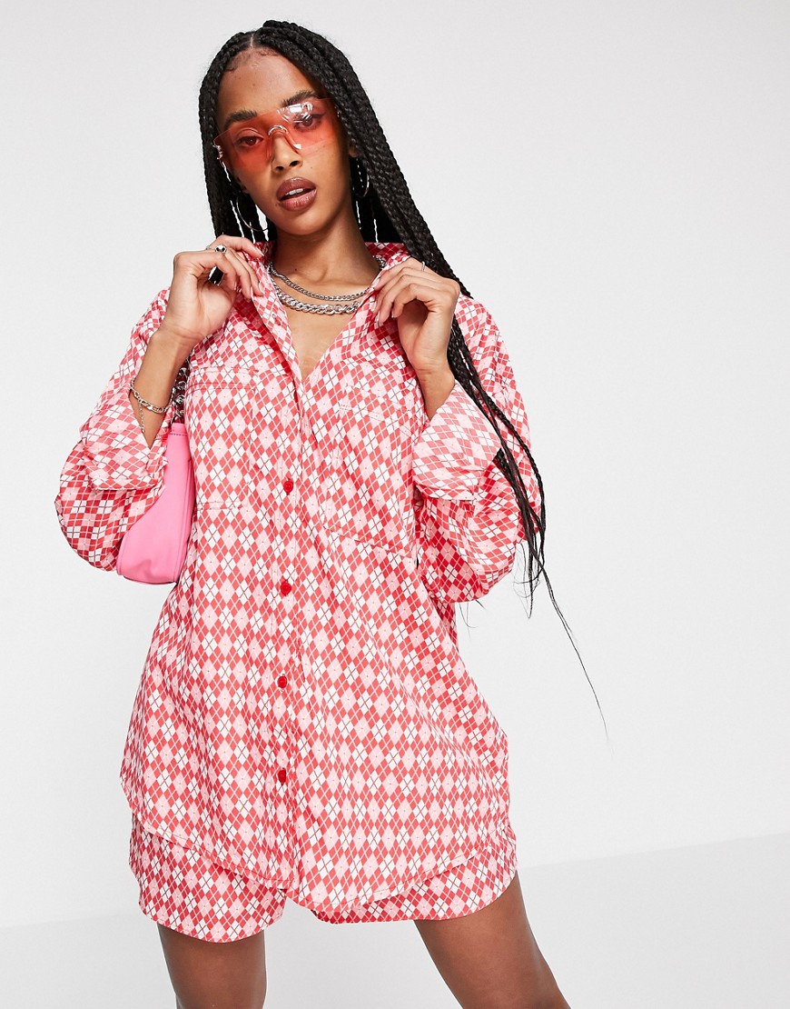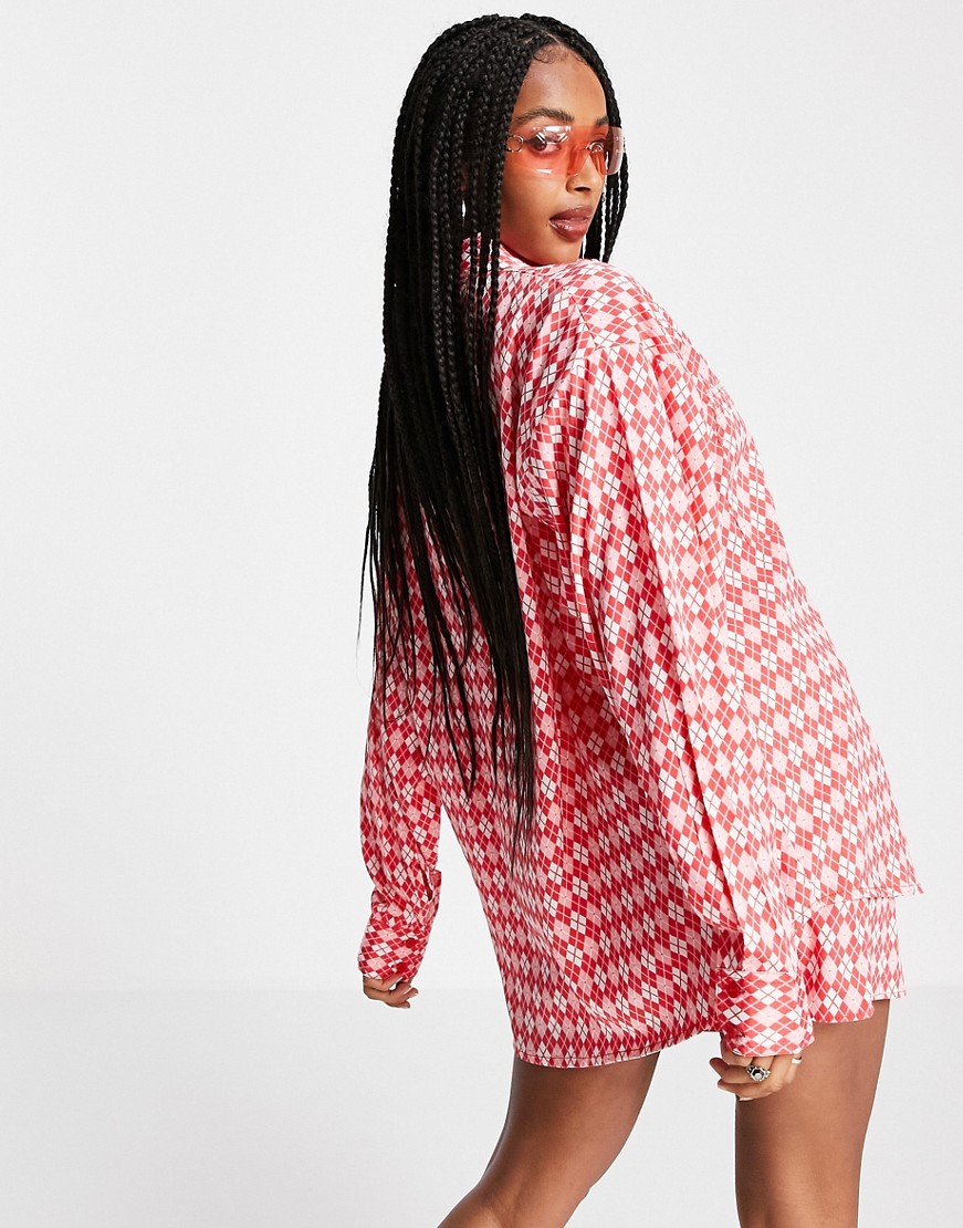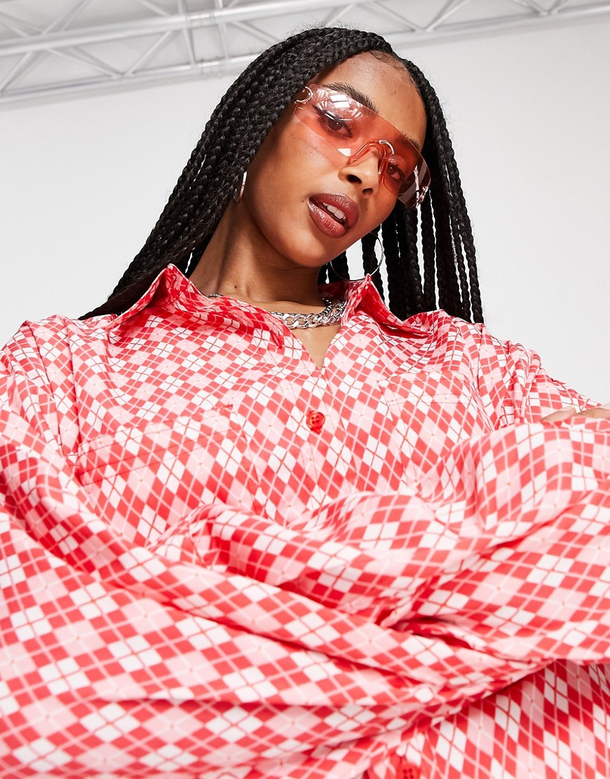 Heartbreak czerwona damska koszula w geometryczny wzór 44