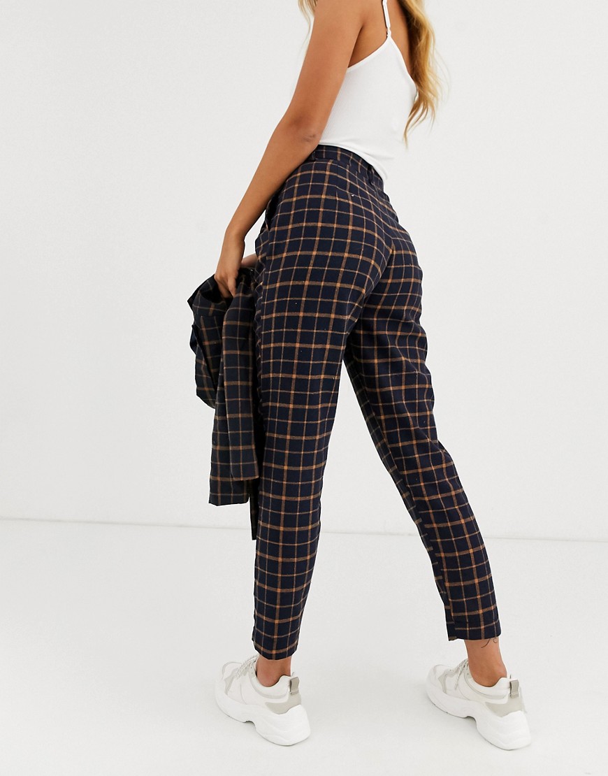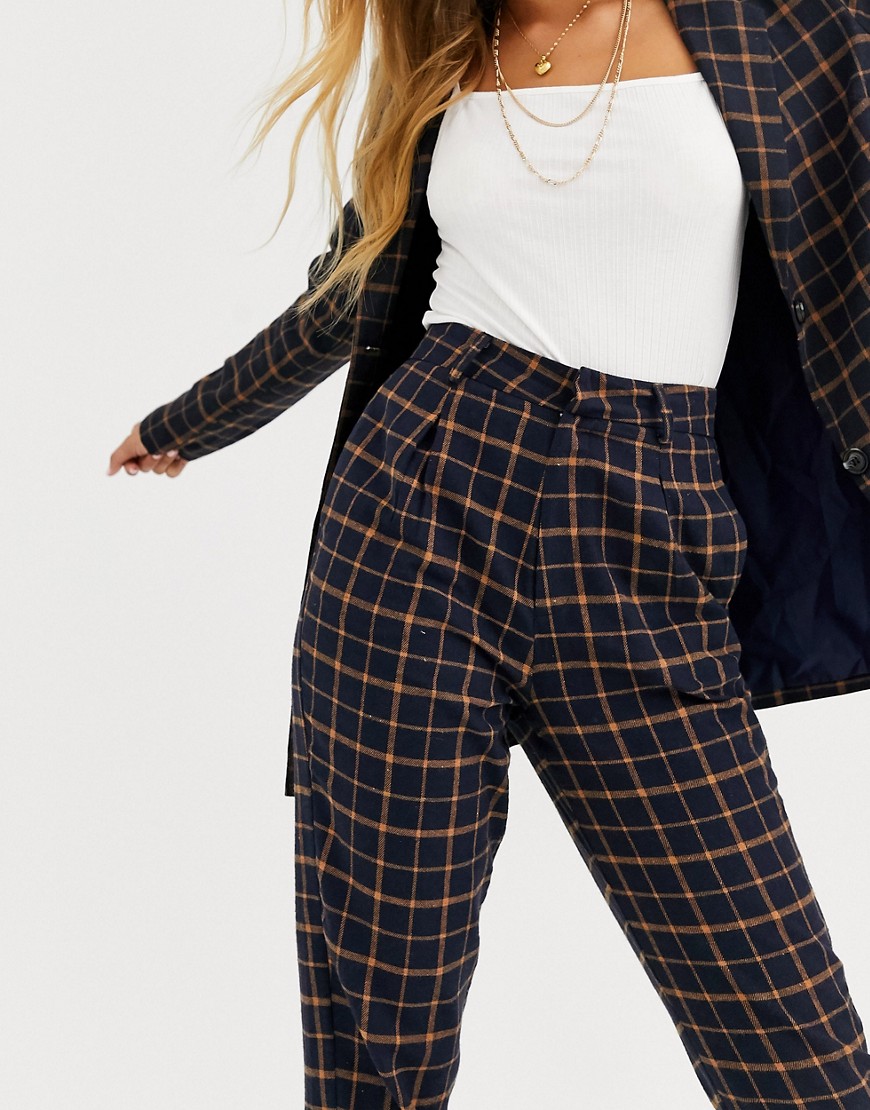 Heartbreak granatowe dopasowane spodnie materiałowe w kratę 38