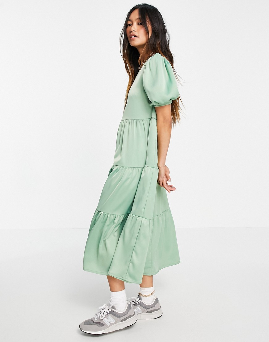 Heartbreak miętowa satynowa sukienka midi z krótkim rękawem 34