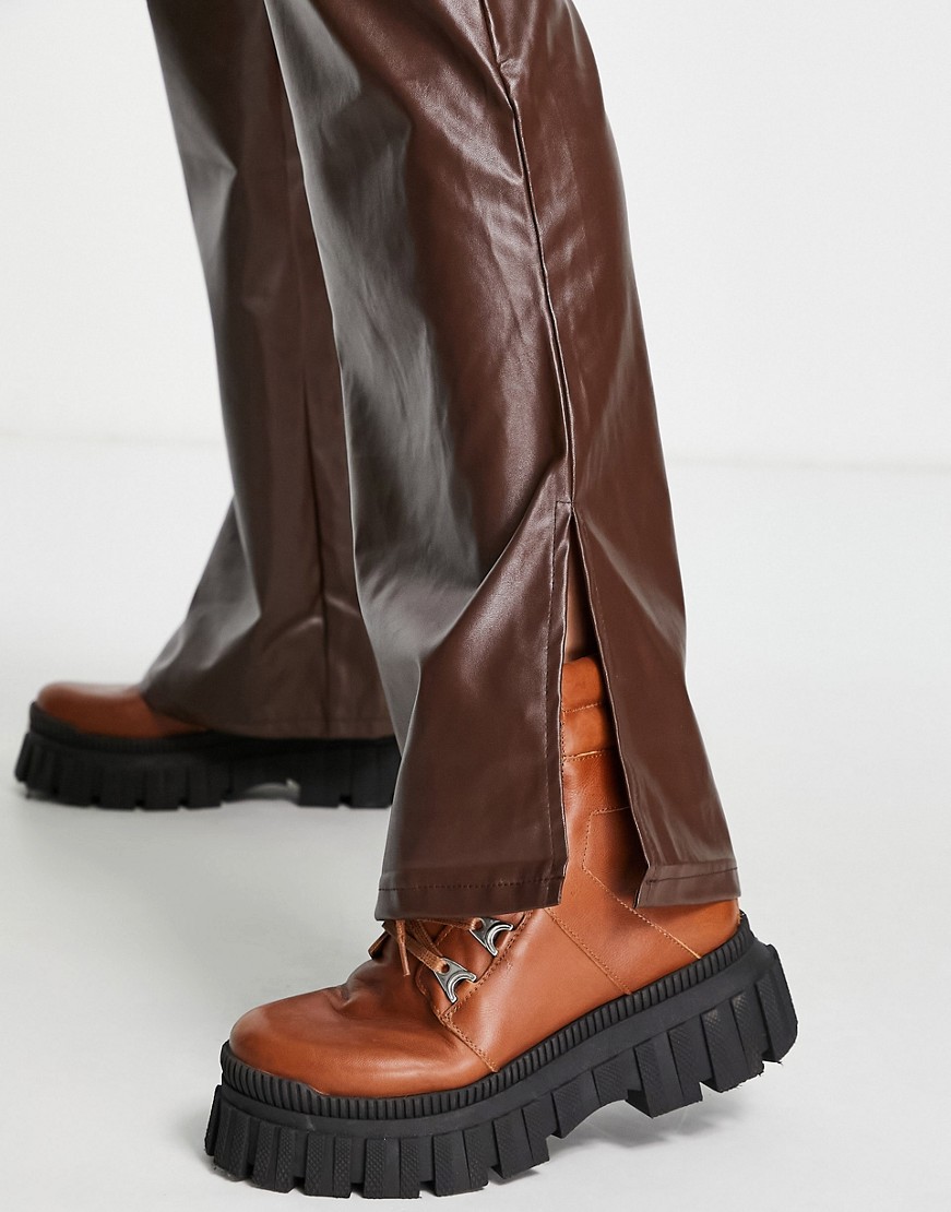 Heartbreak Tall damskie brązowe spodnie z szerokimi nogawkami z poliuretanu L