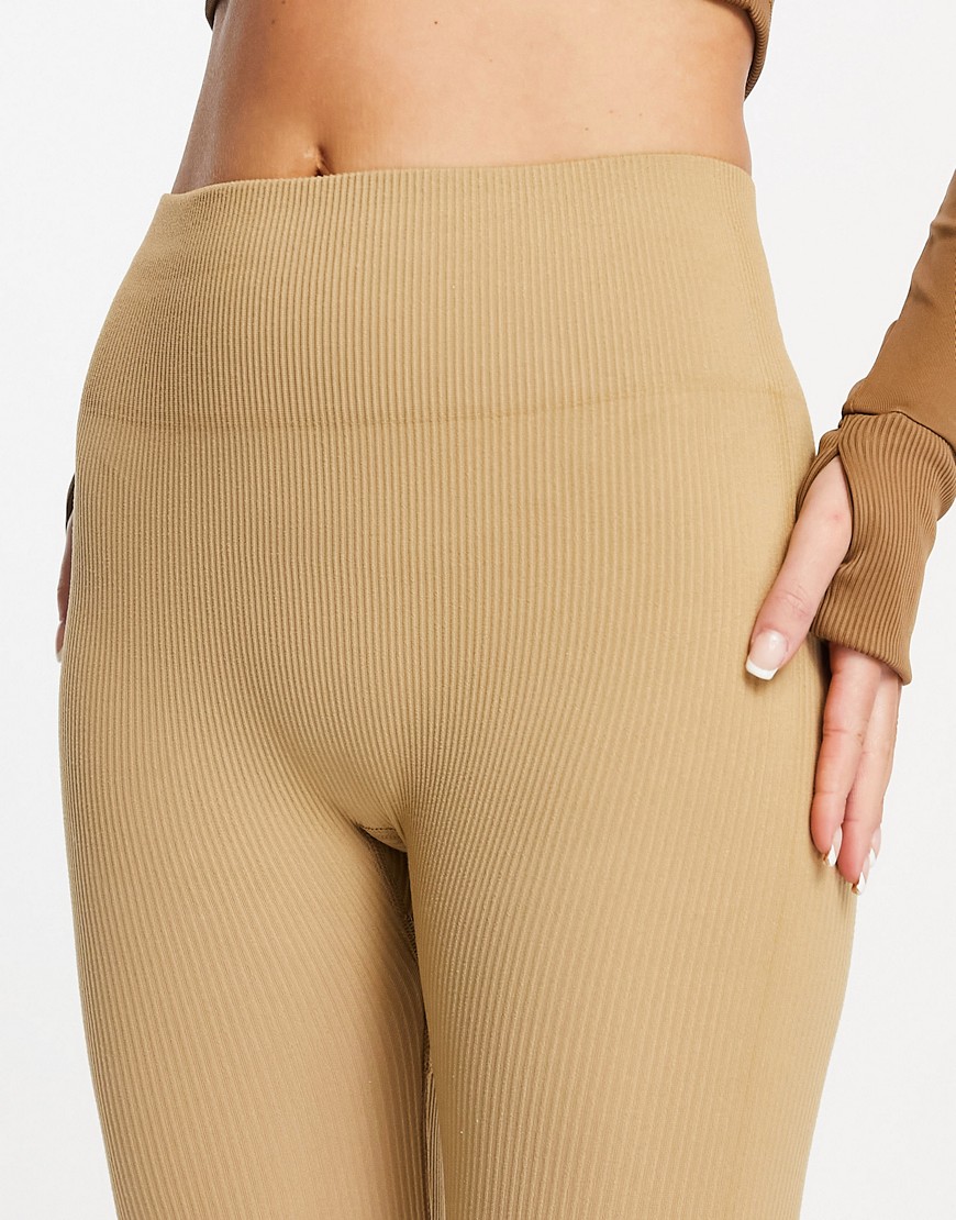 Hiit damskie brązowe prążkowane legginsy defekt S