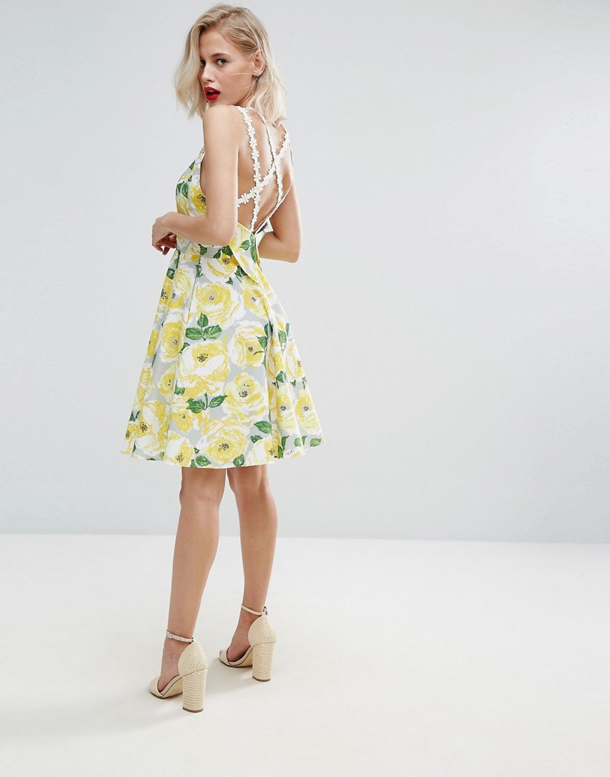 Żółta Sukienka mini w kwiaty marki Horrockses