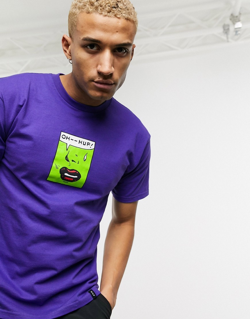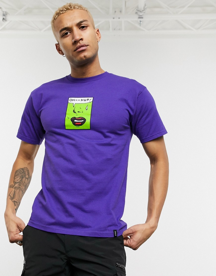 HUF fioletowy T-shirt z zielonym printem L