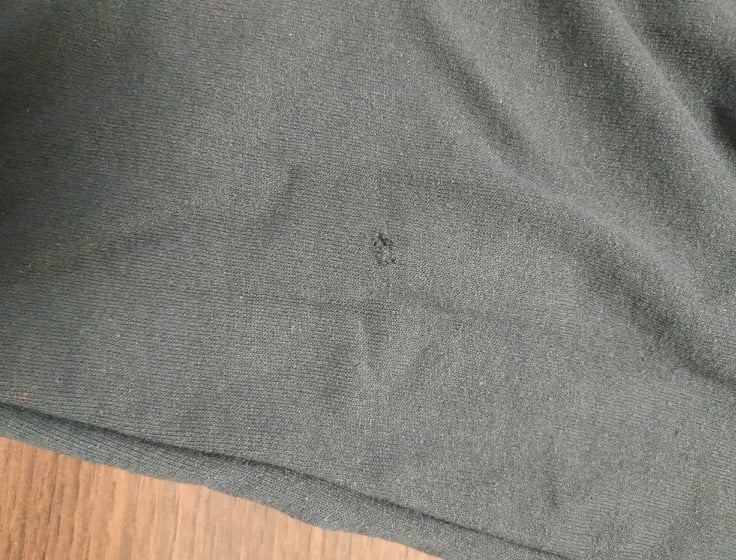 • defekt dziurka z przodu u góry na lewej nogawce i na prawej na dole