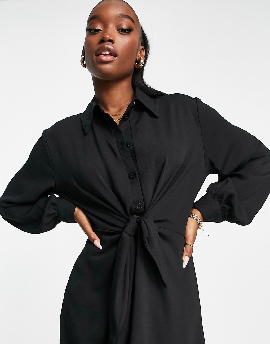 I Saw It First czarna wiązana z przodu koszulowa sukienka midi 38