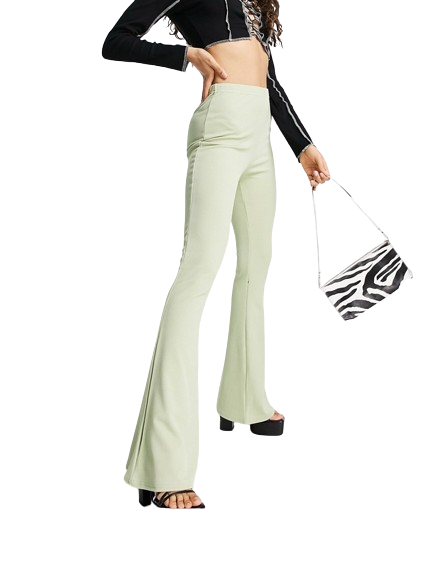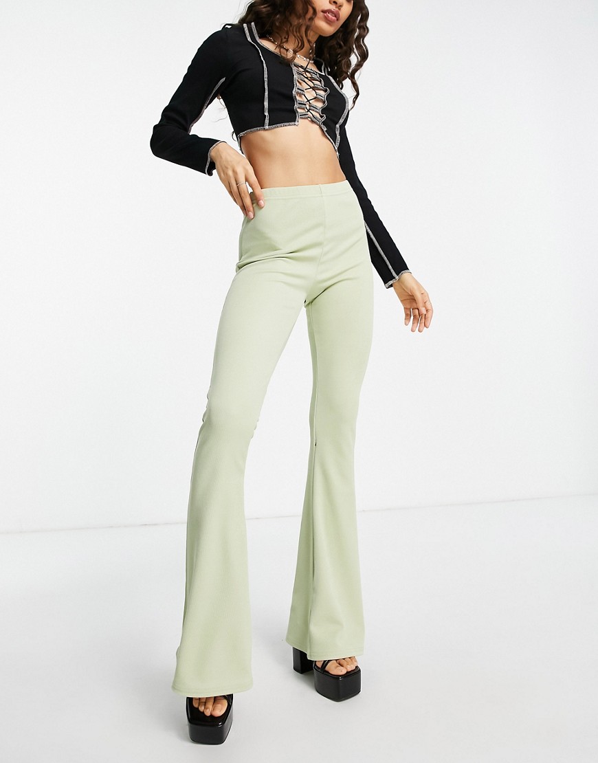 I Saw It First Petite zielone damskie prążkowane spodnie dzwony flare 34