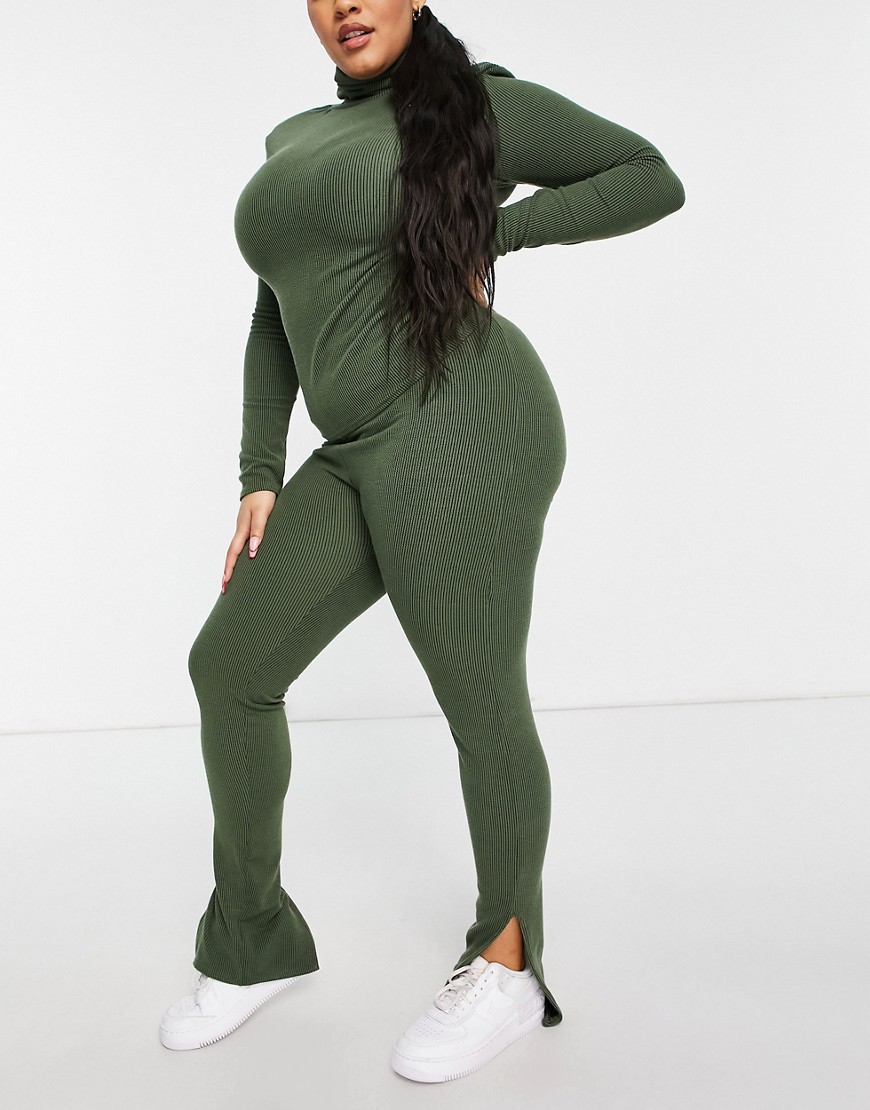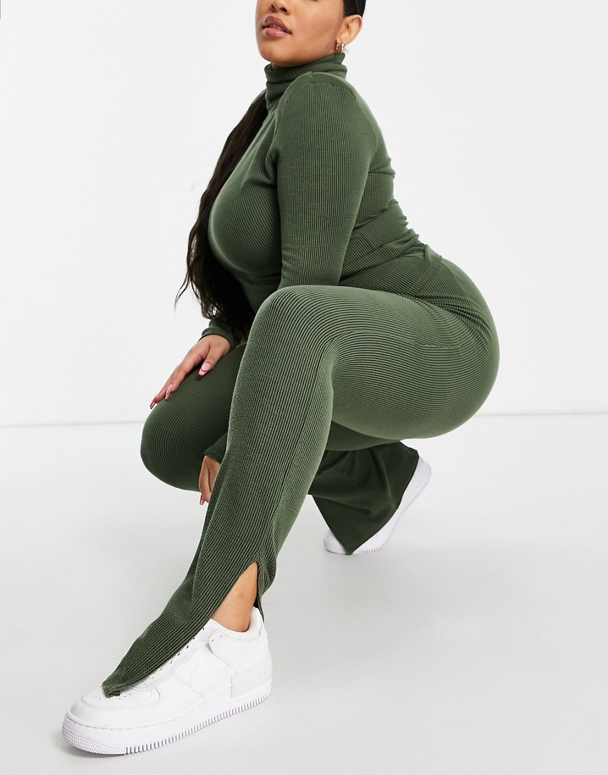 I Saw It First Plus zielone prążkowane legginsy z rozcięciem podwyższony stan defekt 46