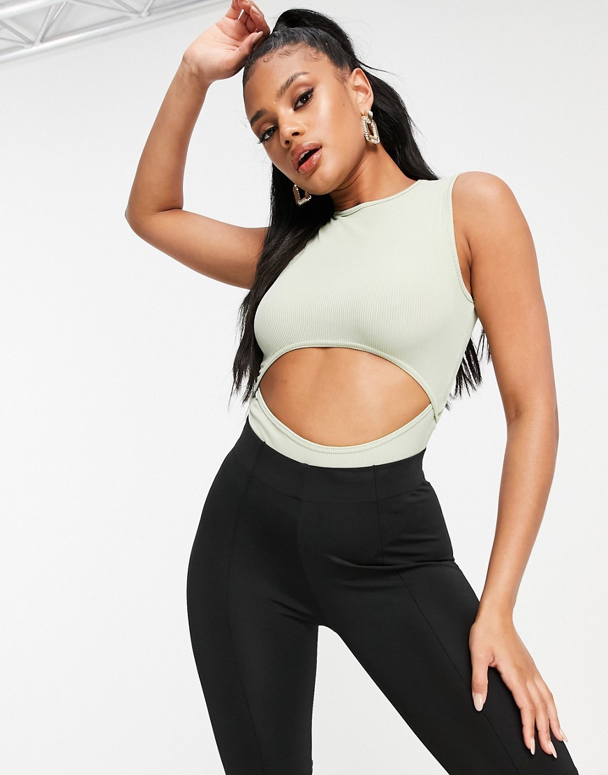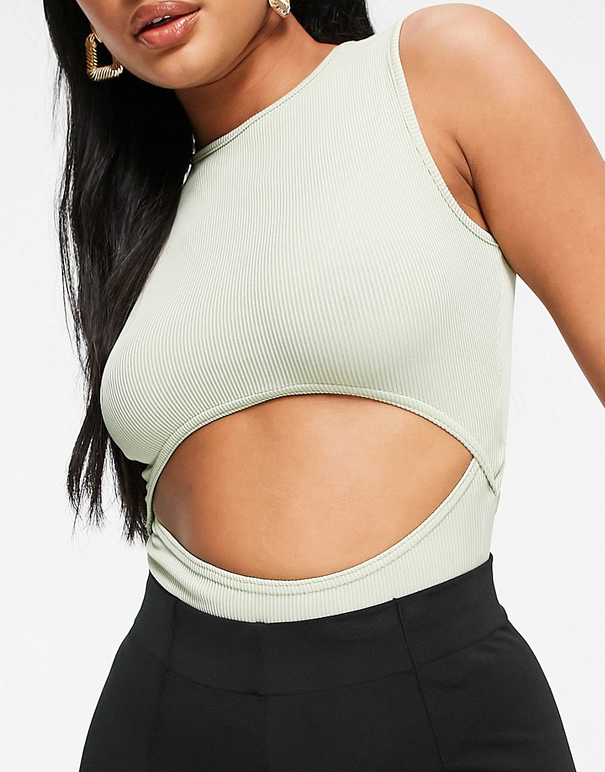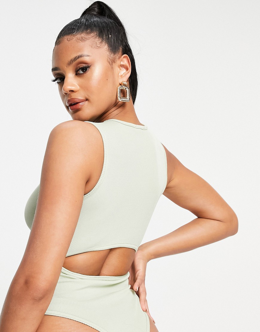 I Saw It First zielone prążkowane body z wycięciami w talii M