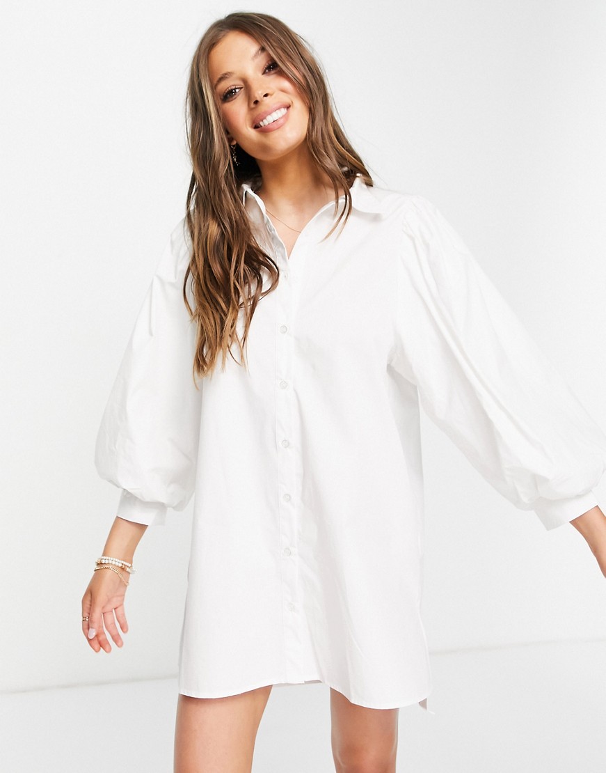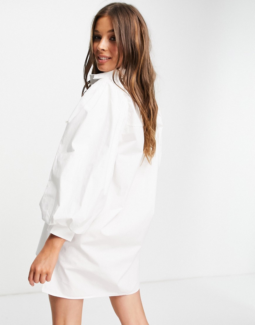 In The Style biała sukienka mini koszulowa bufiaste rękawy