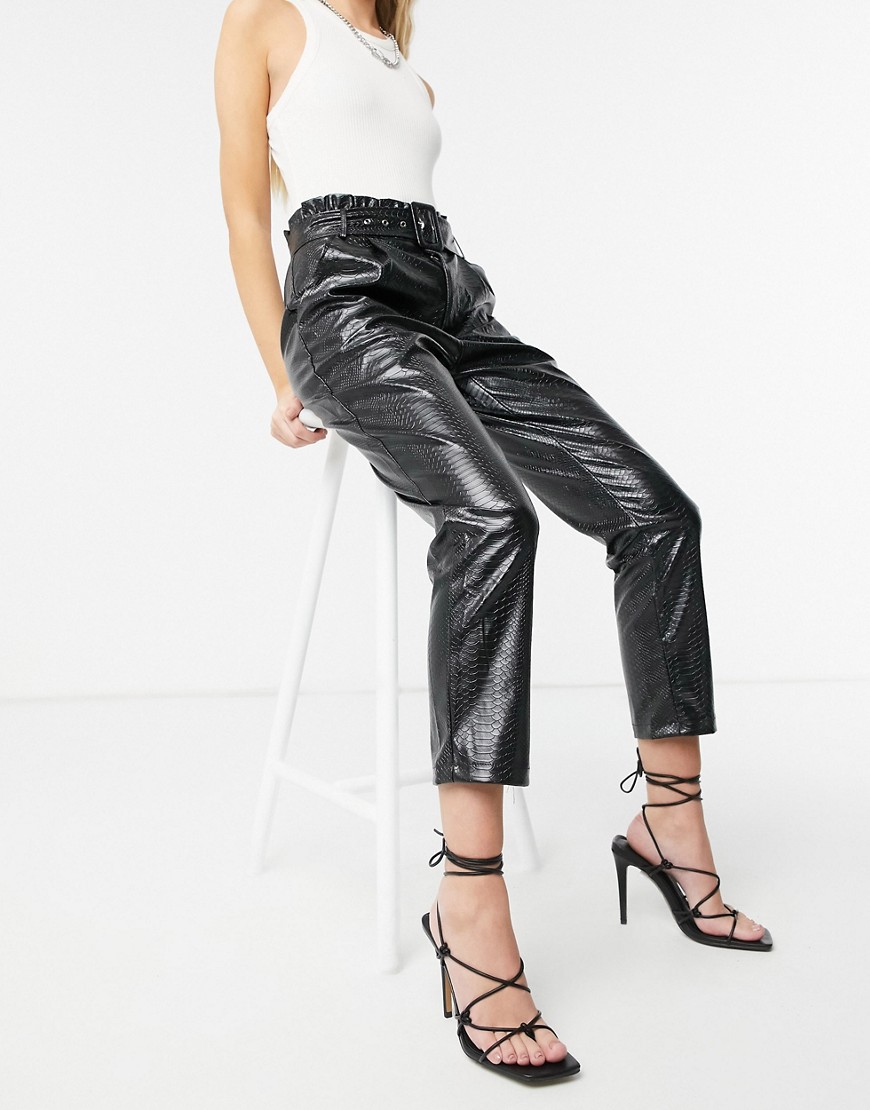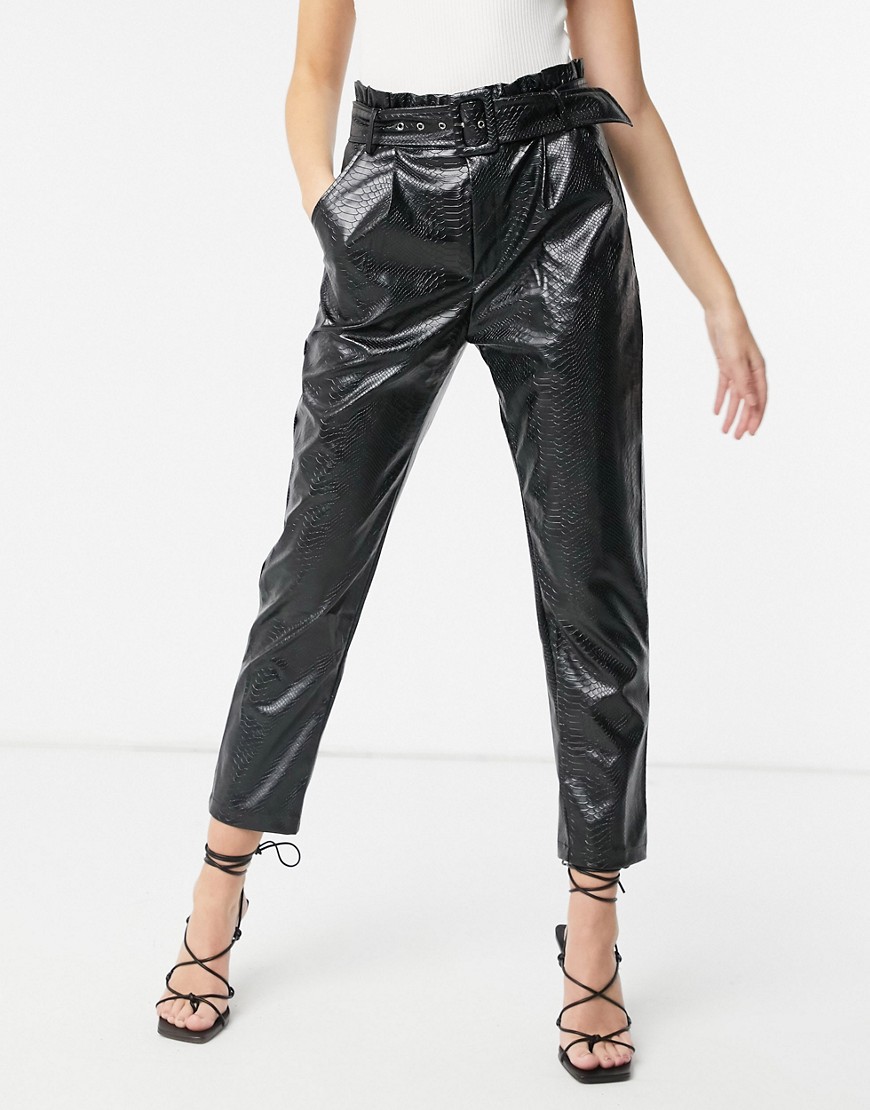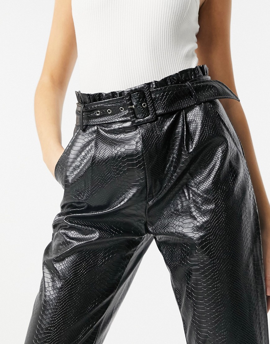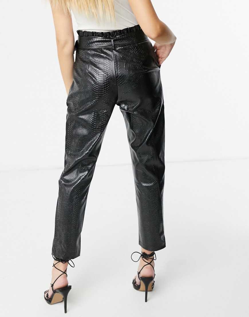 In The Style czarne spodnie z podwyższonym stanem imitacja skóry wężowy wzór 42