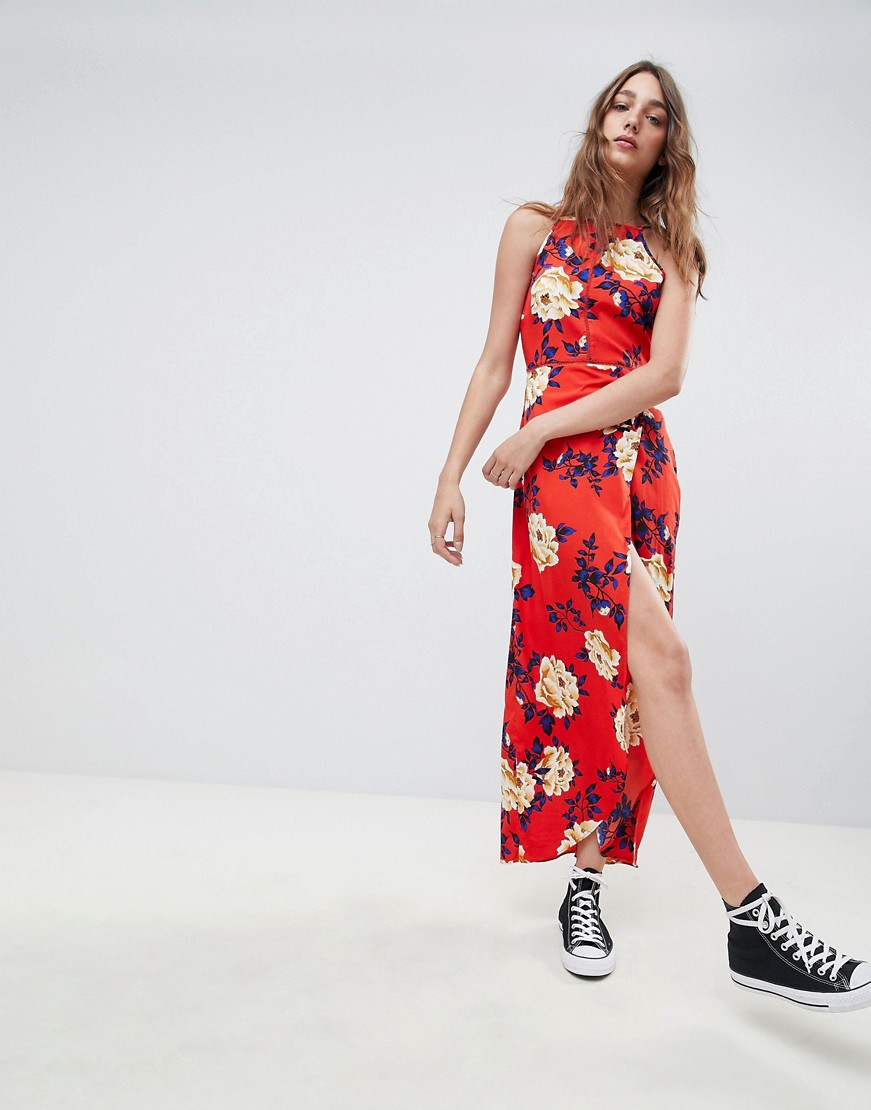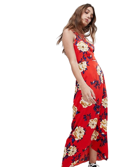 Influence czerwona sukienka maxi w kwiaty 40