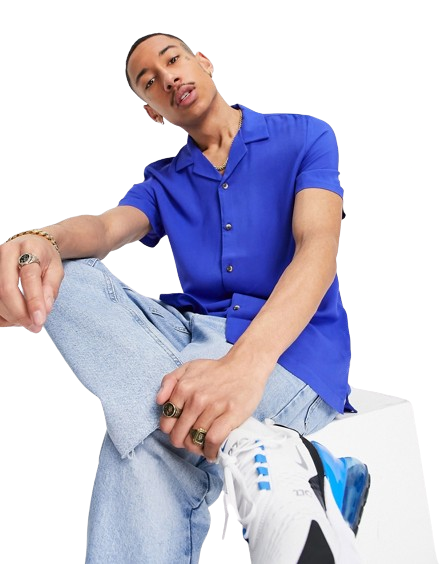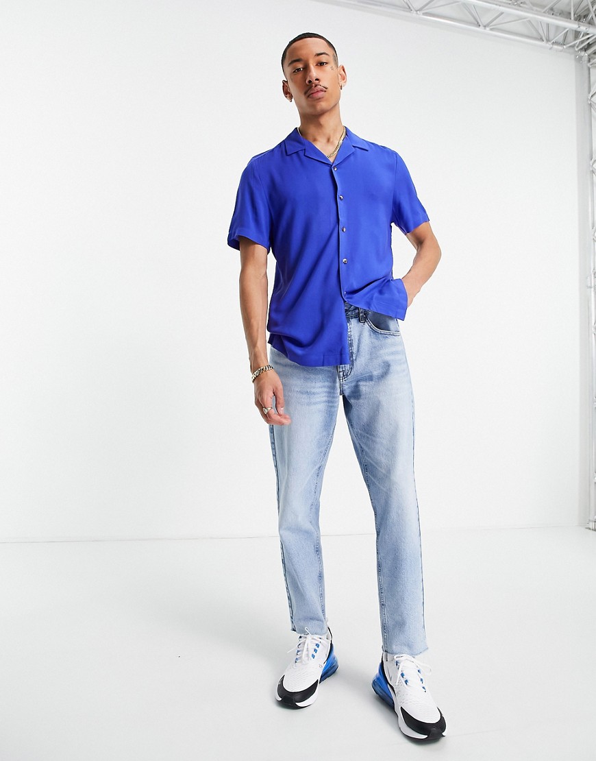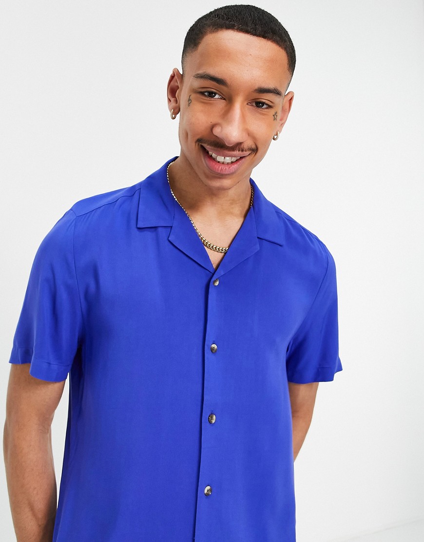 Intensywnie niebieska koszula z wiskozy o regularnym kroju M