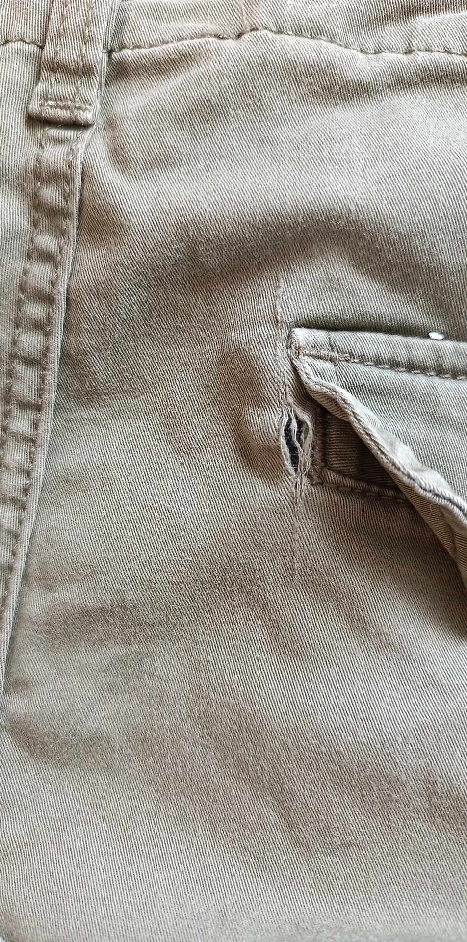 - defekt widoczne ślady użytkowania, rozdarcie przy tylnej kieszeni