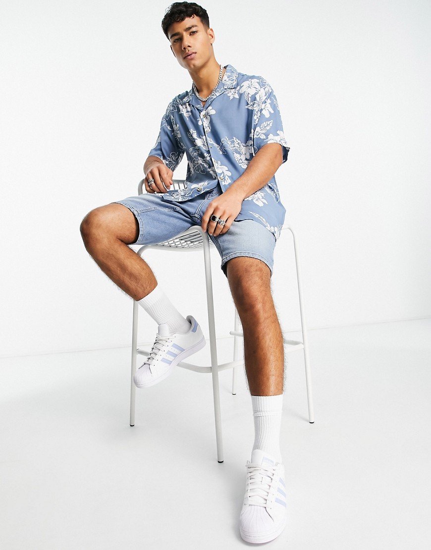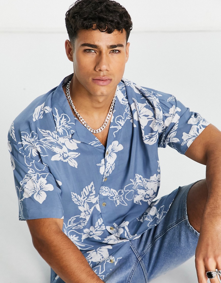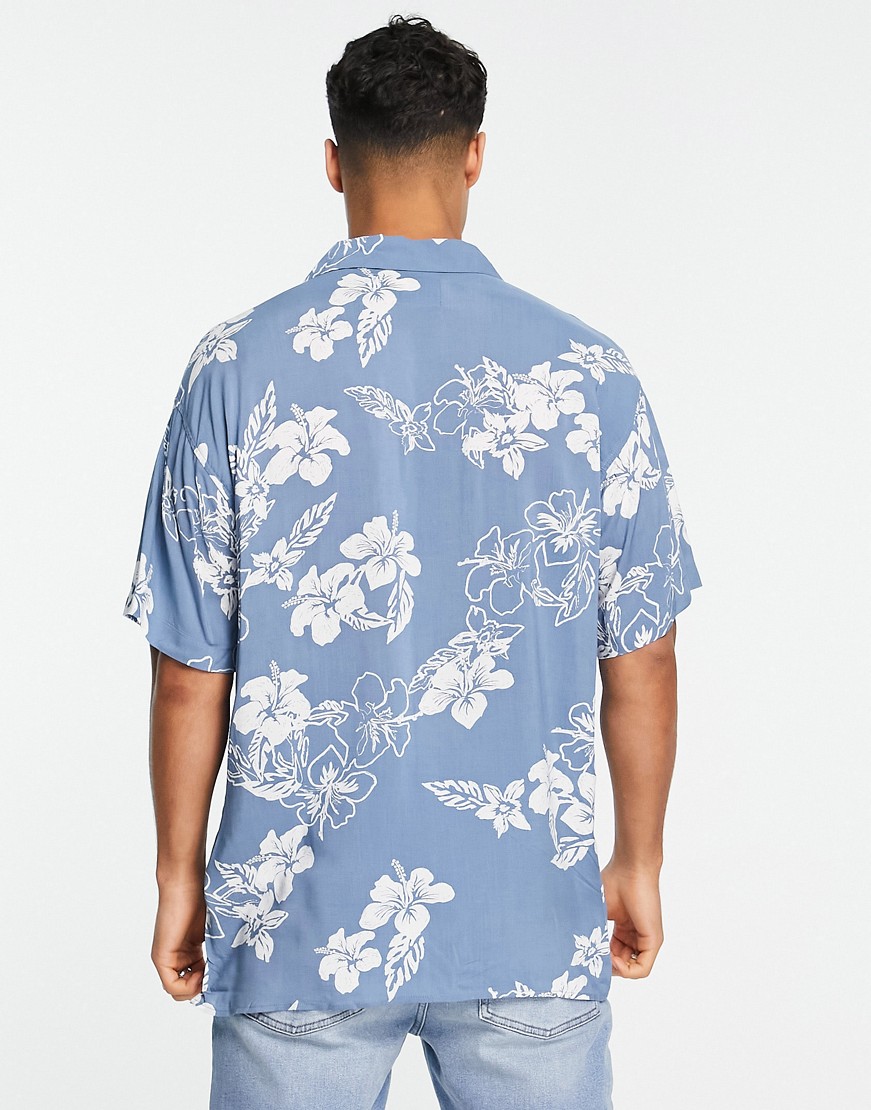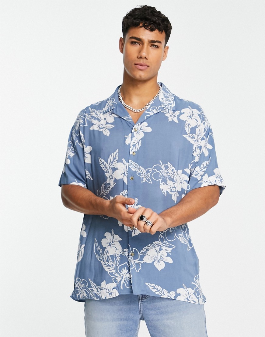 Jack & Jones niebieska koszula z krótkim rękawem w hawajski kwiatowy wzór M