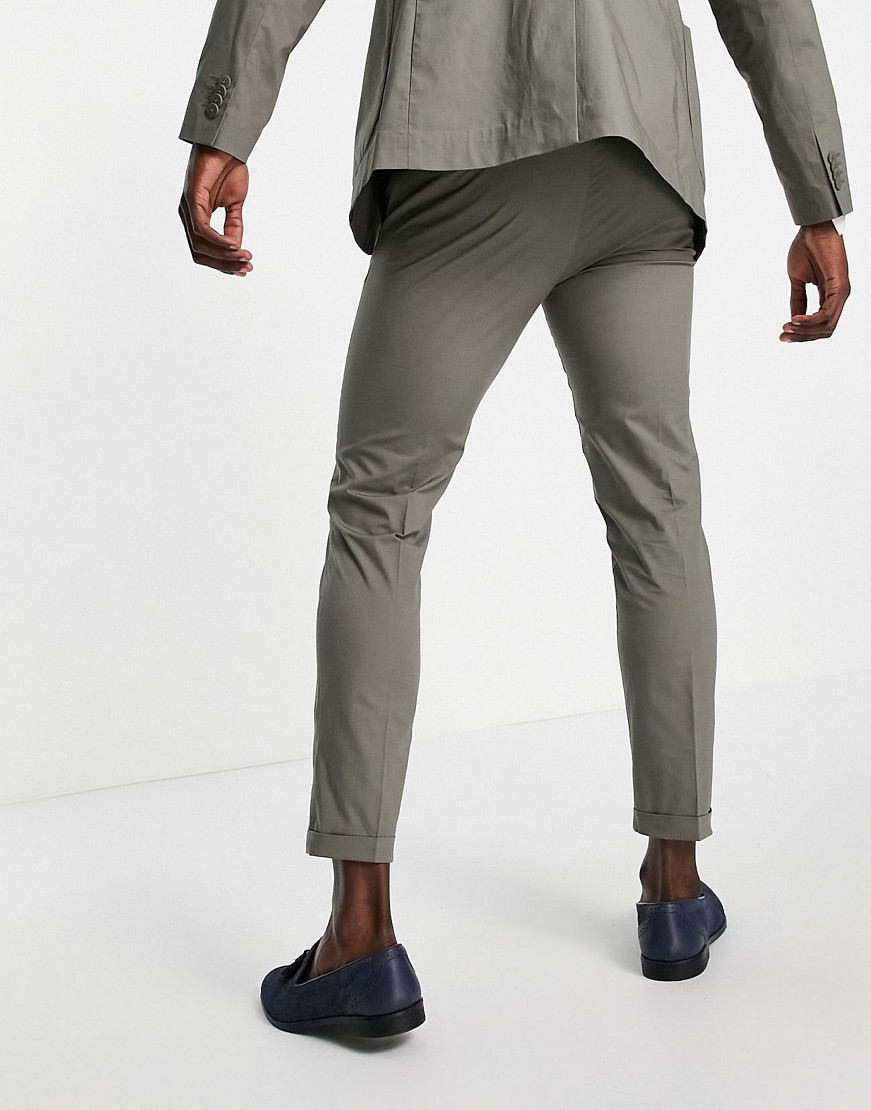 Jack & Jones Premium zielone dopasowane spodnie garniturowe z krótszymi nogawkami W32 L32
