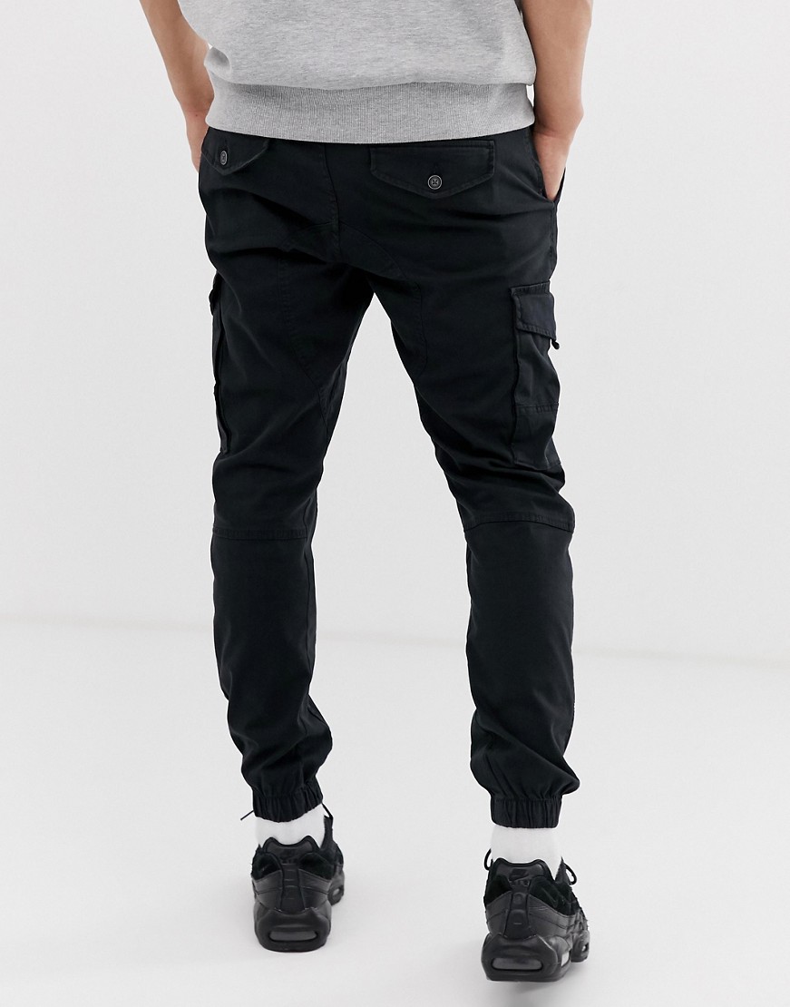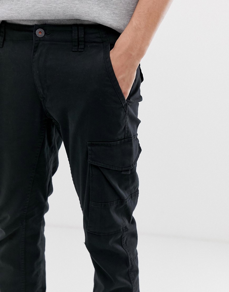 Jack&Jones Spodnie męskie czarne z kieszeniami cargo W34 L30