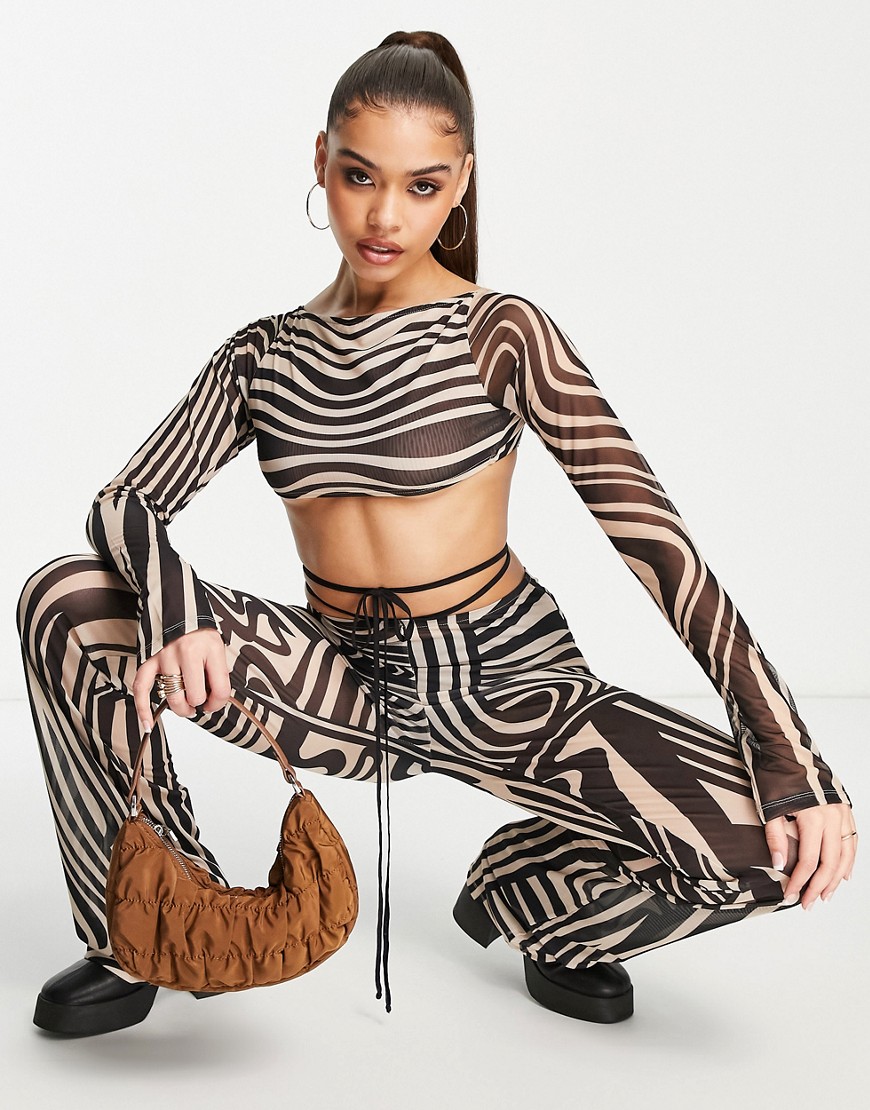Jaded London damskie czarne prześwitujące spodnie dzwony XS