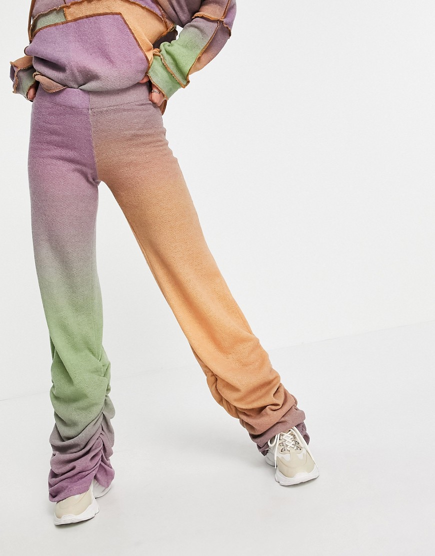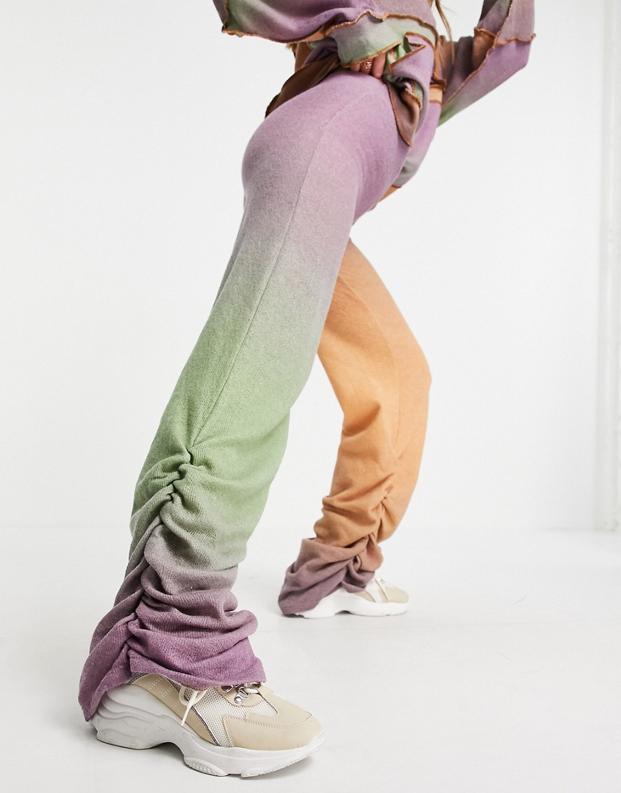 Jaded London damskie spodnie z lekkiej dzianiny, z szerokimi marszczonymi nogawkami multikolor 34