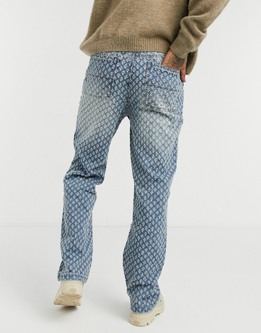 Jaded London – Niebieskie jeansy typu skate o wypukłej fakturze W32 L30