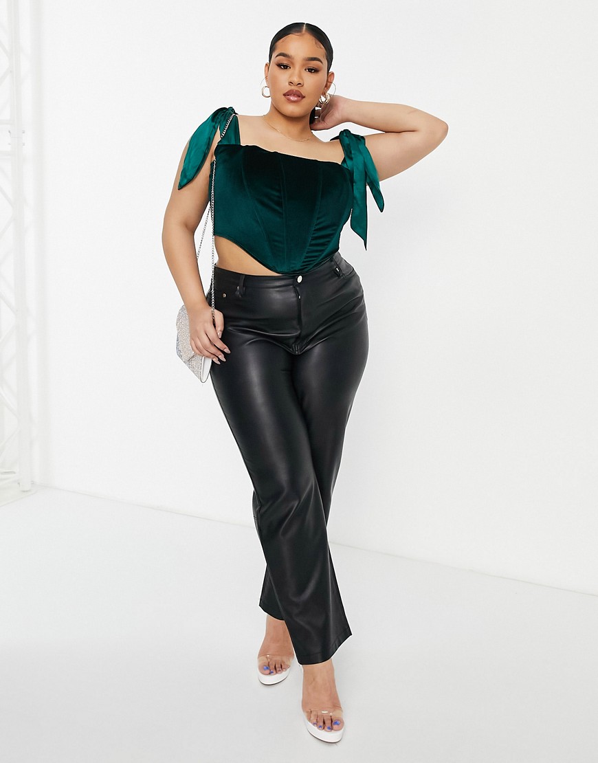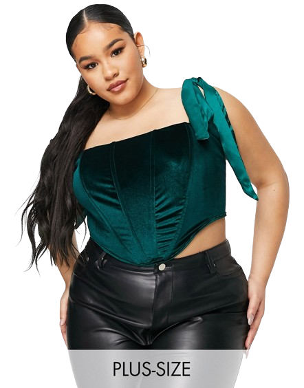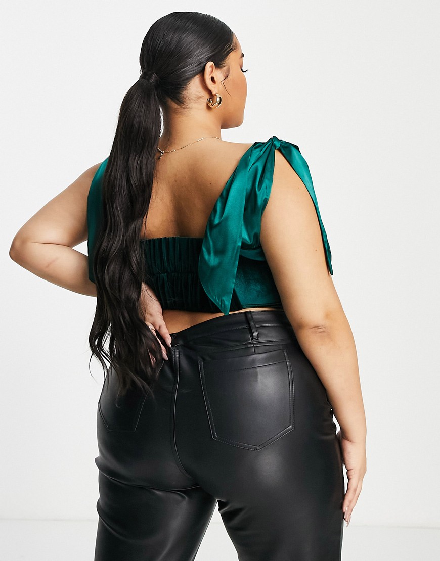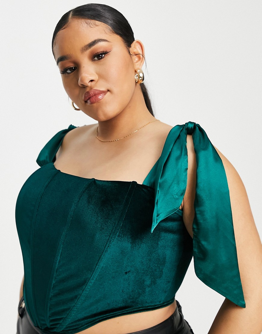 Jaded Rose aksamitny zielony gorsetowy top z wiązaniem na ramionach 46