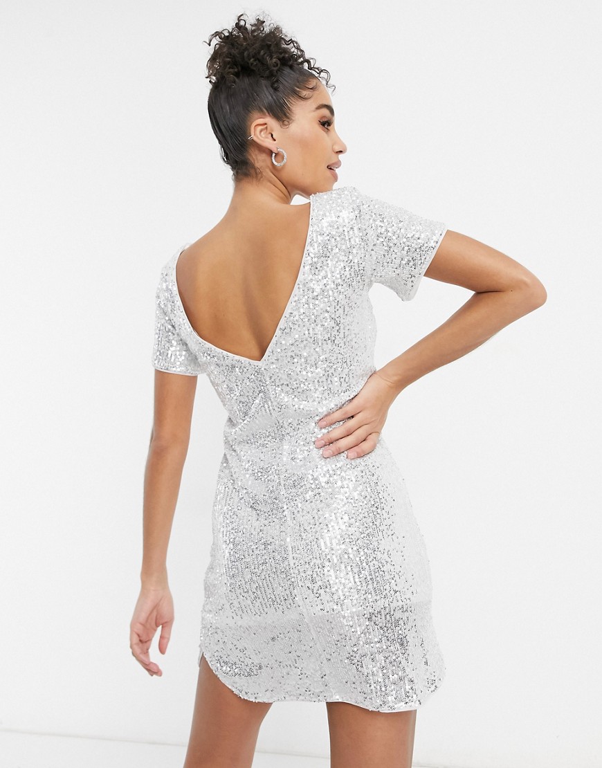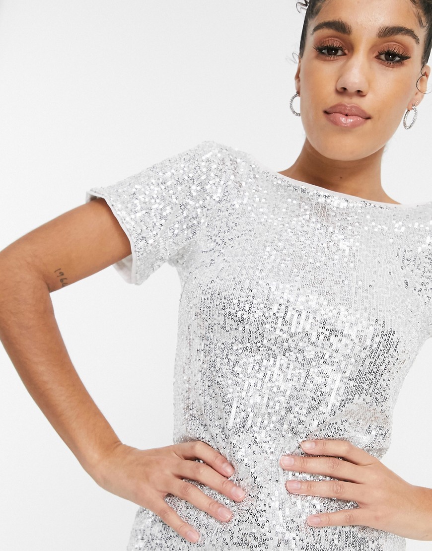 Jaded Rose sukienka T-shirtowa mini w cekiny srebrna 38