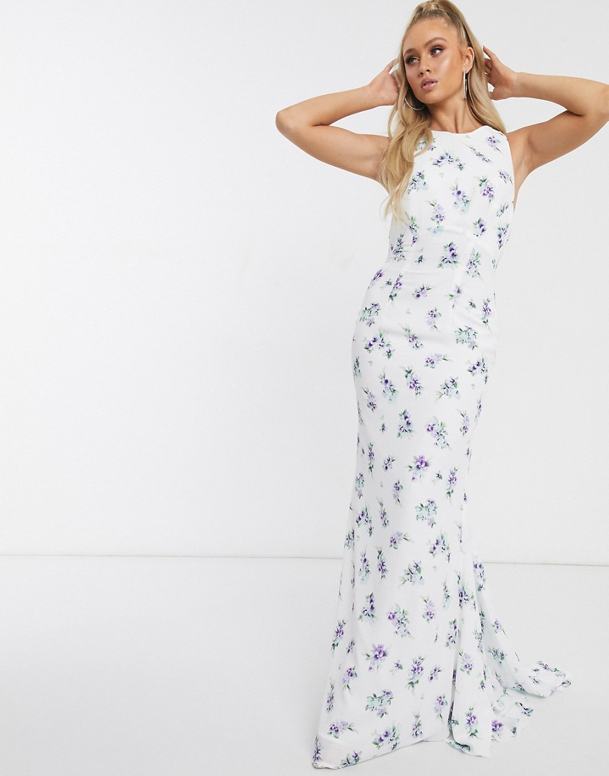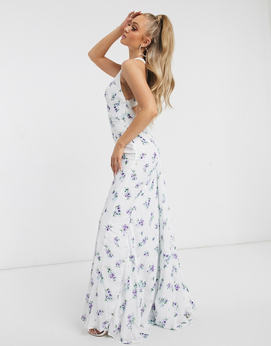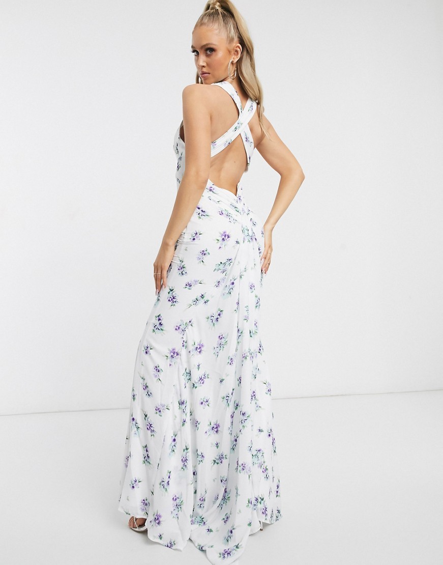 Jarlo biała sukienka maxi w kwiatki z odsłoniętymi plecami 44