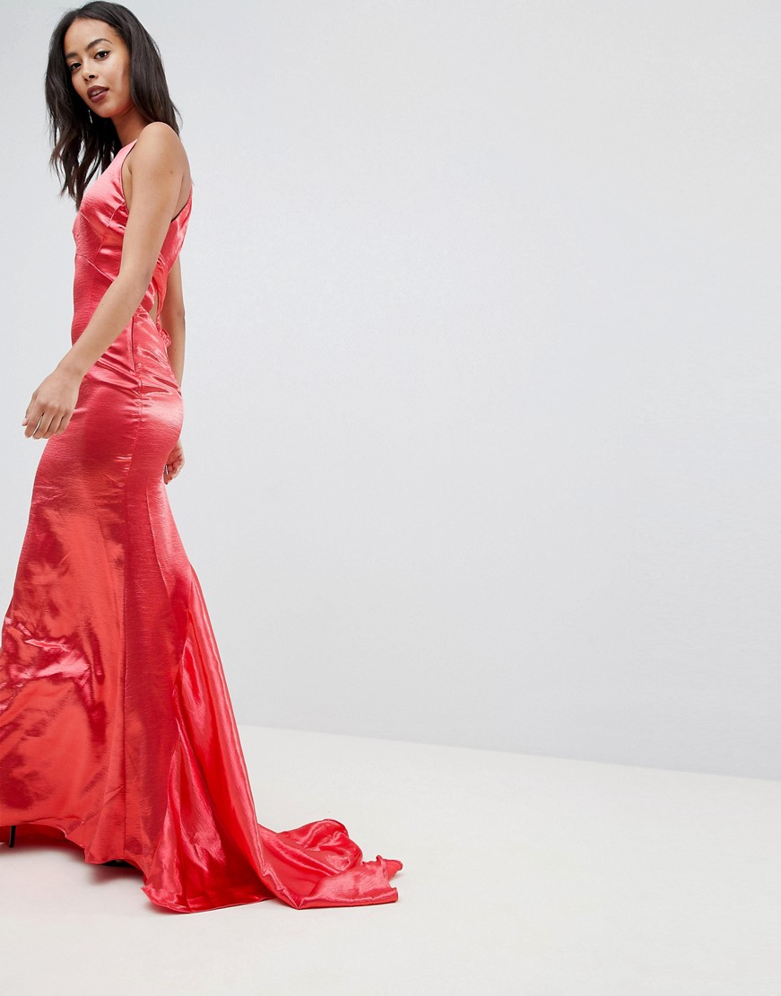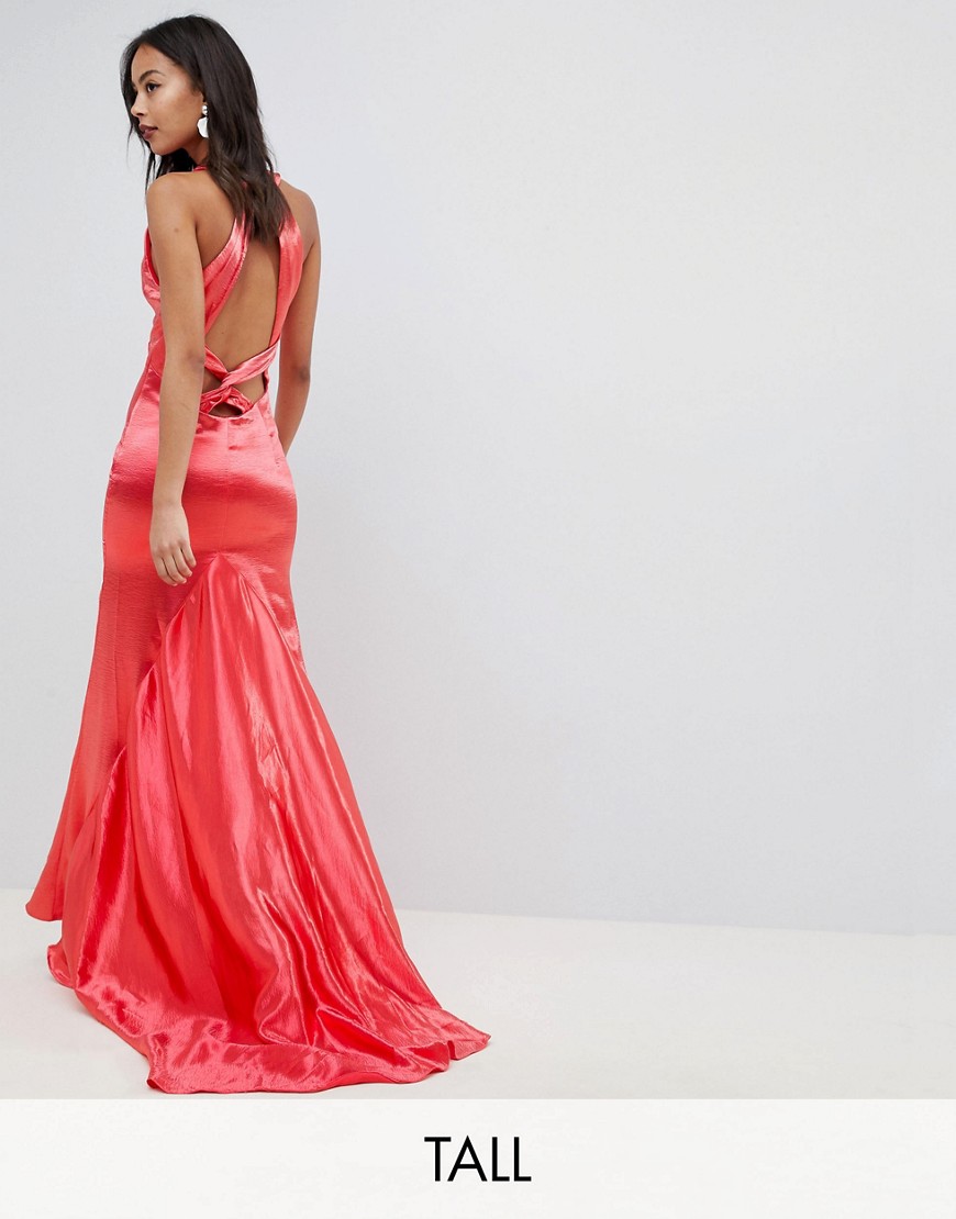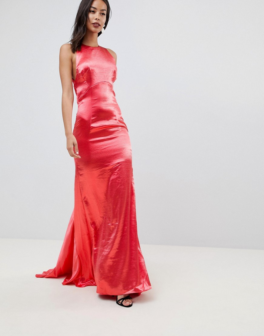 Jarlo czerwona sukienka maxi z odkrytymi plecami i trenem defekt 40
