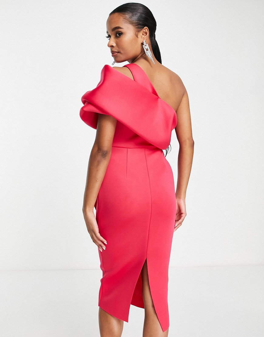 Jaskraworóżowa ołówkowa sukienka midi defekt 34